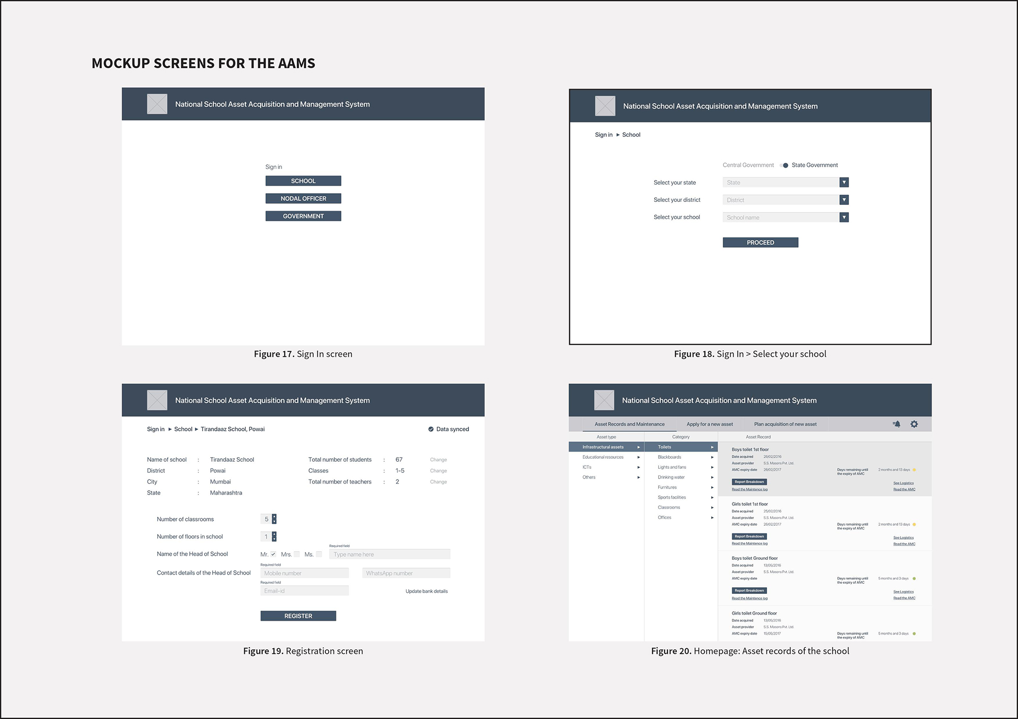 - Mockup Screens for the AAMS