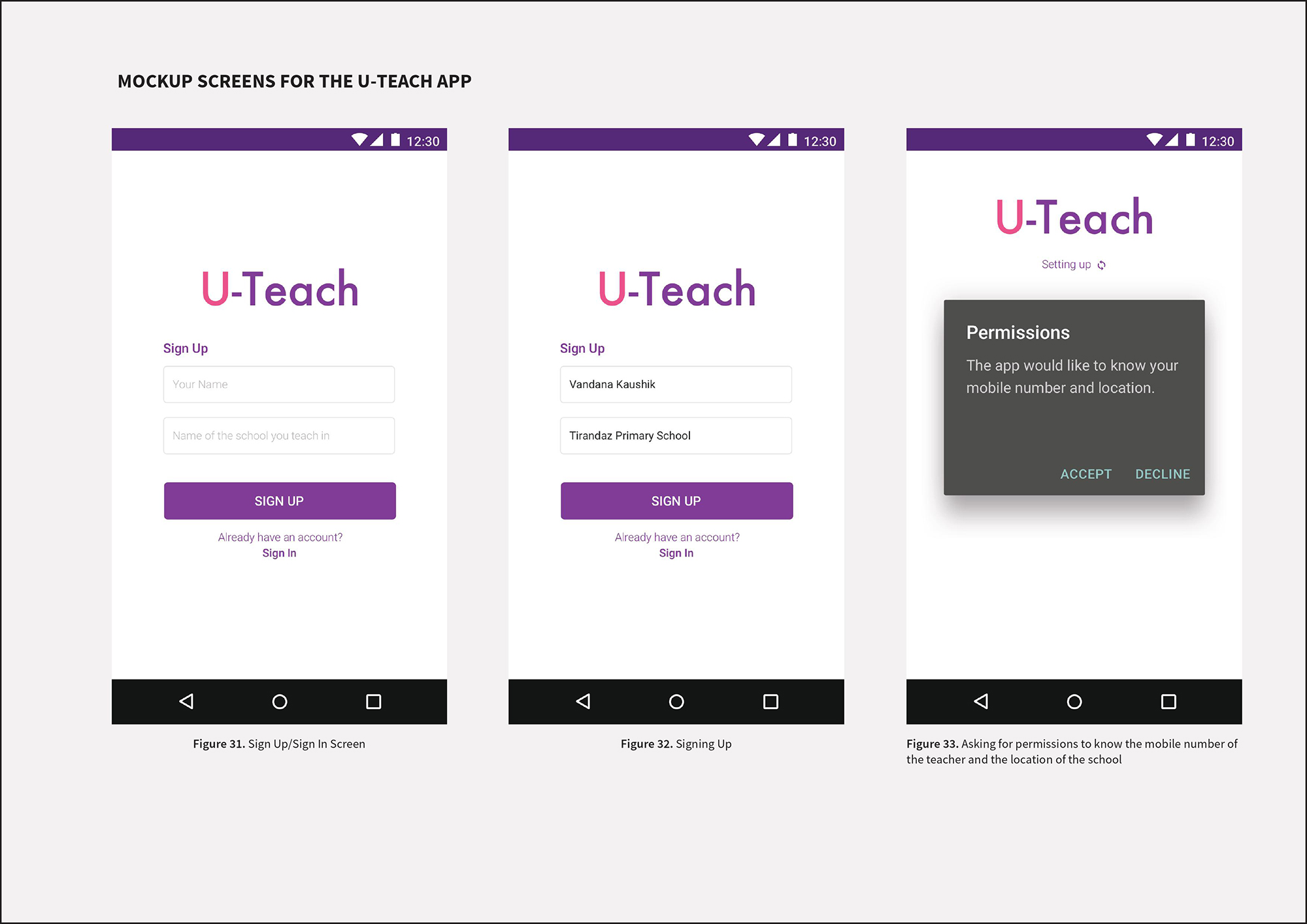 - Mockup Screens for the U-Teach App