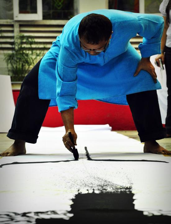Achyut Palav has made efforts to bring- forth calligraphy not only as an art form but also an expressive medium where letters in all their nakedness becomes alive, vibrating, pulsating with its inherent shape, giving a canvas space to your thoughts, a meaning to the sounds and actions.