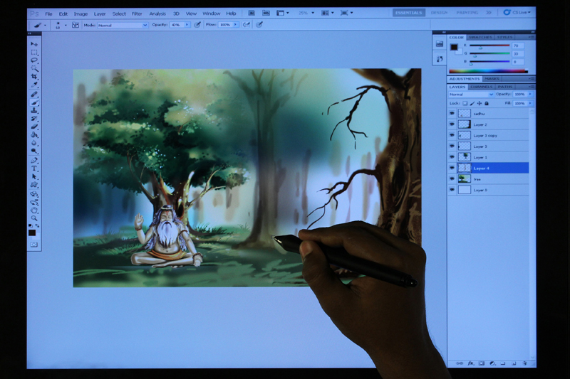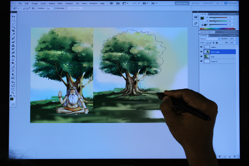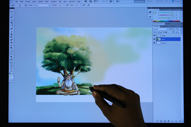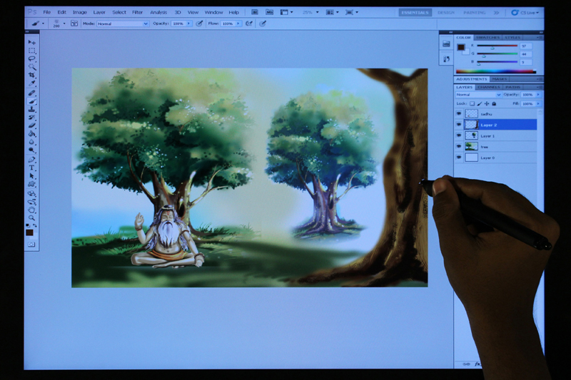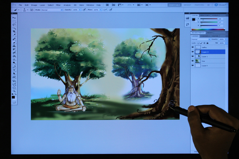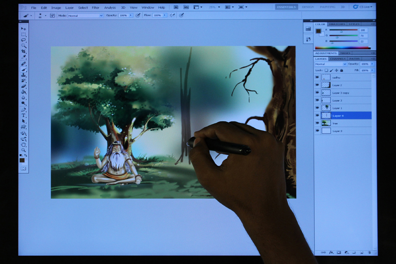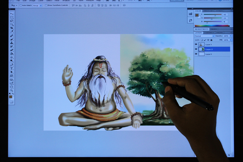 / Digital Composition of Sadhu under Tree