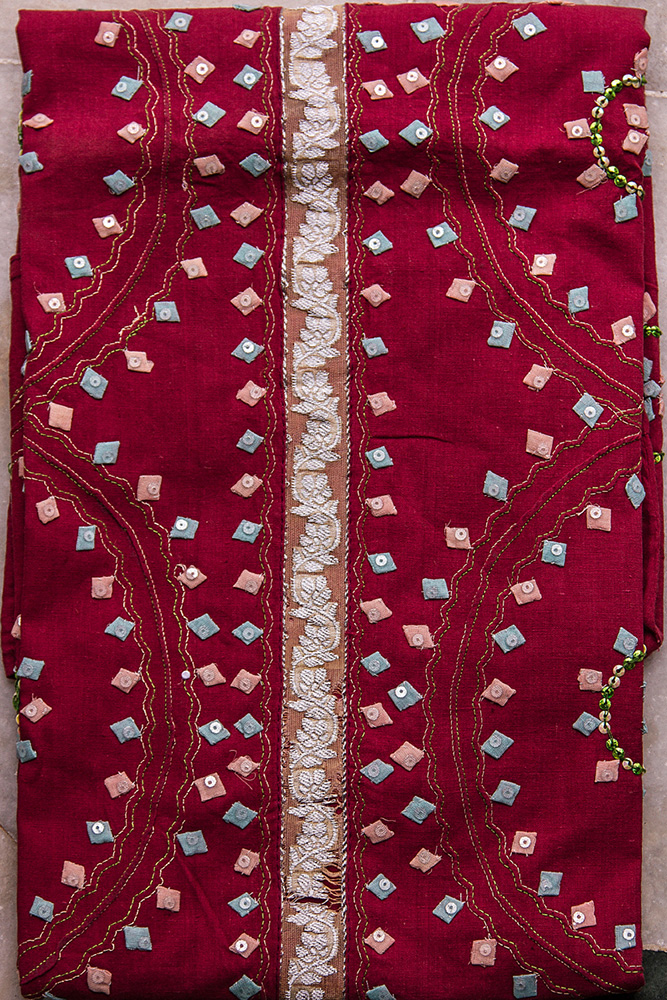 Applique work employees the women folk in the villages of Aligarh of Uttar Pradesh to make the work easier and helps in stabilizing some of the urgent requirements of their family. It is generally known as smaller ornament or method applied on another surface with one piece. The word is said to be borrowed from the French which means applied or thing that has been applied. It is referred to as the surface pattern, which is used to decorate a garment or product. Applique with the needlework method in which patterns with figurative scenes are made by the attachment of smaller pieces of fabric to the backing cloth with distinct color and texture.