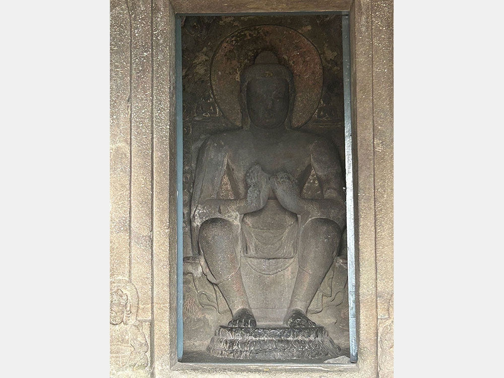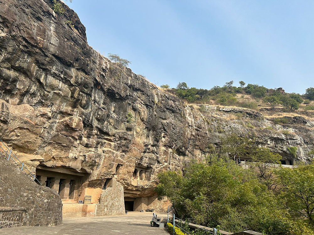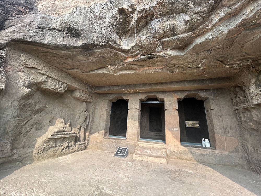 • Facade of Cave 2, a Buddhist Chaitya or shrine hall.