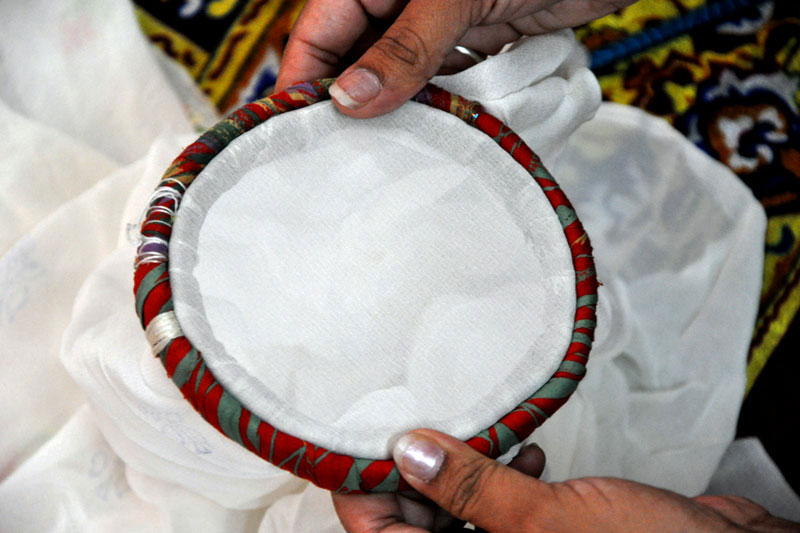 Lucknow- the state capital of Uttar Pradesh is world renowned for its traditional ChikankariEmbroidery. Chikankari is the embroidery work done with the white cotton thread on fine white cotton material. Chikankari is also called as shadow work. The word 'Chikan' is basically derived from Persian word 'Chikeen'. The origin of Chikankari is initiated by the influence of intricate carving patterns of Mughal architecture during their period. The Chikan work in Lucknow is older than 200 years and later it is patronized by Nawabs. There are three stages involved in making chikankari namely block printing, embroidery work and washing. Initially, the design to be worked is printed on the plain fabric. The wooden block is dipped in the color solution. Then it is printed on the fabric. There will be different blocks for butis, floral patterns and borders. The printed fabric is now ready for the embroidery work. The embroidery is done over the printed design pattern using needle and thread. Different types of stitches can be made in one product. Washing is the final stage of production process. The fabric after embroidery work is first soaked in water and then washed to remove the block printed blue color. Then it is starched and ironed to obtain stiffness. The final product is now ready for the market.