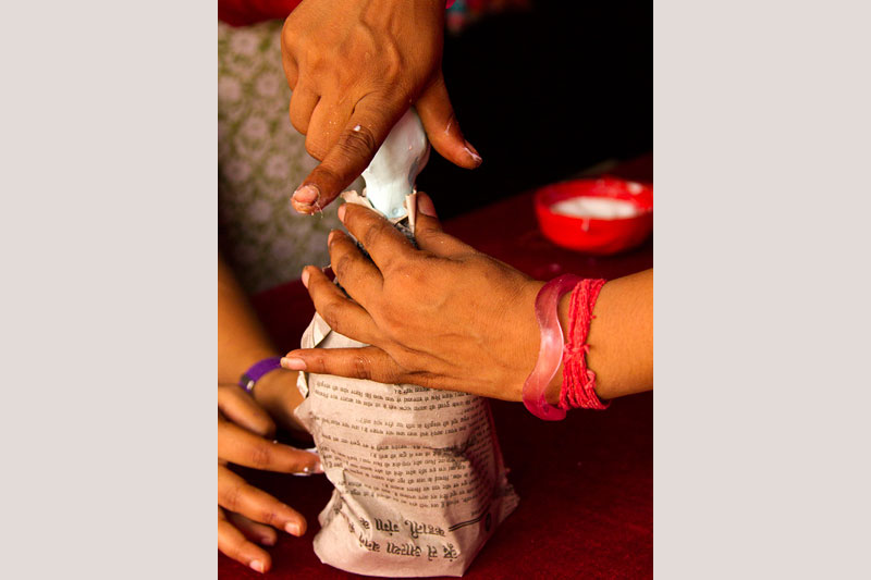 • The small head is fixed and the base is covered with newspaper to make the body.