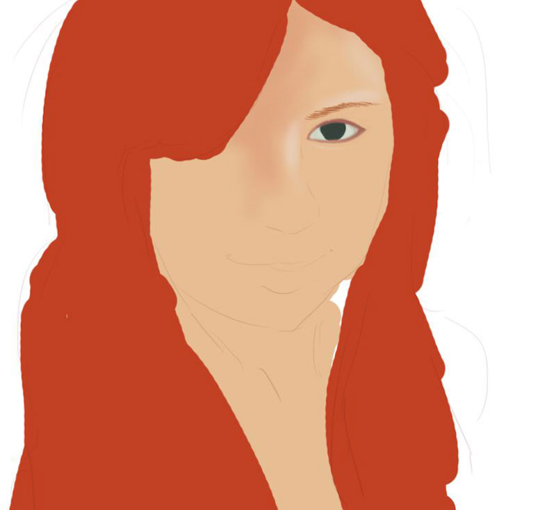 • Some hair lines are drawn in separate layer and they are blurred using Gaussian blur to create depth.