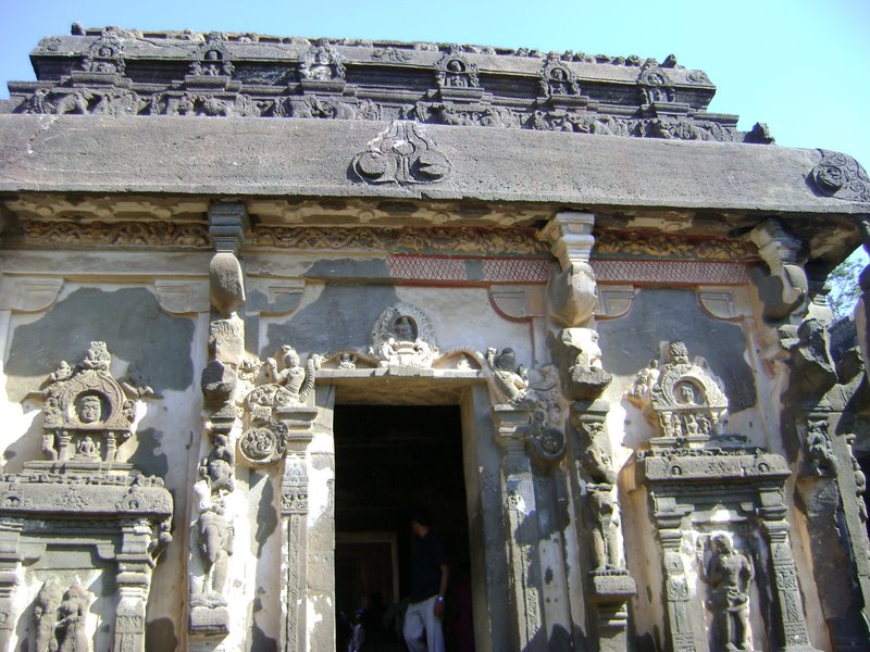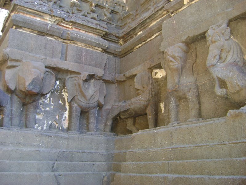 Ellora (Verul) – Lies 30 km from the Aurangabad city, in the Indian state of Maharashtra. Aurangabad is one of the major tourists attracting city due to world heritage sites - Ajanta & Ellora caves. Ellora caves are finest specimens of cave temple architecture. Their structures represent the three faiths of Hinduism, Buddhism and Jainism. The 34 "caves" - 12 Buddhist, 17 Hindu and 5 Jain caves, demonstrate the religious harmony prevalent during this period of Indian history. The Buddhist caves consist mostly of viharas (monasteries) carved into the mountain face. The Hindu caves represent a different style of creative vision and execution skills. Whereas, Jain caves reveal specific dimensions of Jain philosophy and tradition. Bhadra Maruti Temple: Dedicated to Hanuman is located at Khuldabad, few killometers from Ellora caves. Here, the idol of Hanuman is in reclining/ sleeping posture. It is one of the only two places where you will find Hanuman in a sleeping posture, the second being at Allahabad.