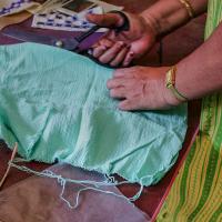 It may also incorporate different materials such as pearls, beads, quills, and sequins. The primary stitching tool in embroidery is the needle, which is available in various sizes and types. The base material of the fabric is varying from place to place. Silk, wool, and linen have been in use for many years for both fabric and yarn. Though machine embroidery is also available yet, traditional hand embroidery is much more popular. Traditional folk techniques were passed from generation to generation. Ms. Sunanda is an artist who is an expert in handkerchief embroidery. She is from Goa, a state in India.