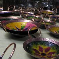 These are collection of enameled copper craft items. These are made by craftsmen from Muradabad in Uttar Pradesh.
