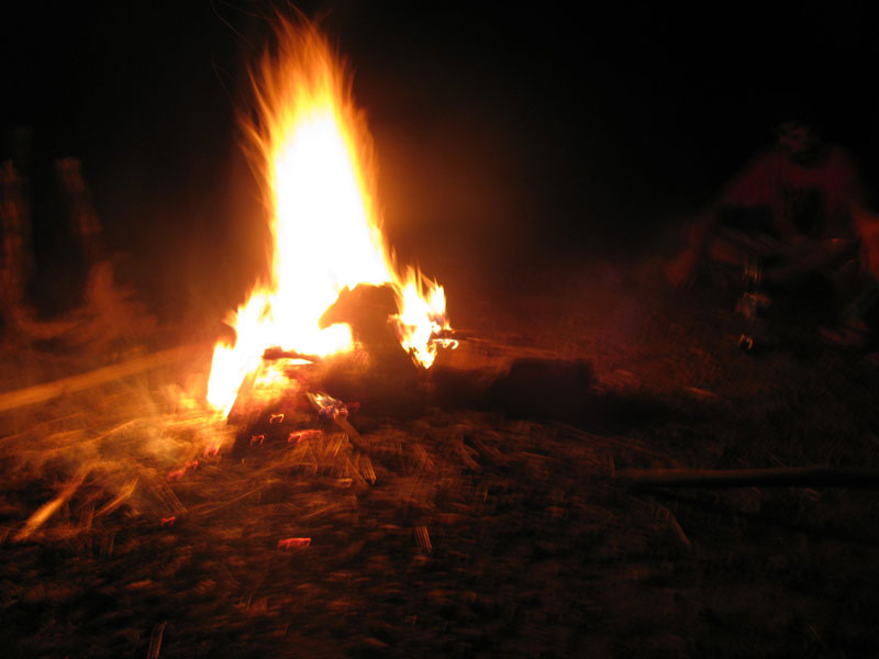 Shots of Fire during a camp on the banks of a lake near the hills, south of Pune city.