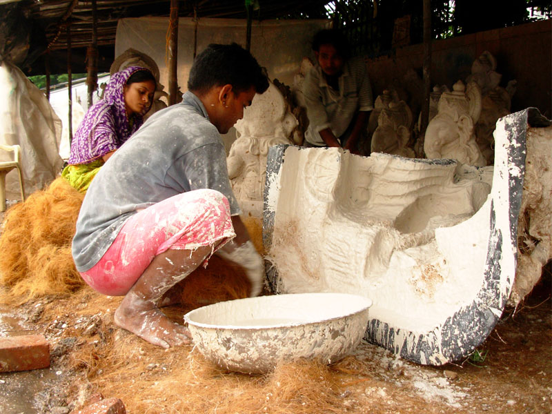 A rigorous and elaborate activity that begins months in advance to the grand 10 day Ganesh utsav, the idol makers of Ahmedabad are a busy clan. Skillfully trained in making clay idols with ease, today these artisans have opted for the Plaster of Paris (POP) material as a cost effective option. The idol makers are small group of people settled in Ahmedabad for last several years. They supply Ganesh idols to Mumbai and many other places in Gujarat.