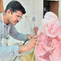• Artist working on Radha Krishna idol.