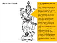 Imagery in Hinduism is preserved in its mythology. It is difficult to fully appreciate the iconography of images from the Hindu tradition without identifying with the philosophy behind it. A myth here is not easy to understand, but the code of myth can be broken by symbols. Symbols of a deity make up a pictorial script. Vishnu, is the second deity of the Hindu Trinity. He is responsible for the sustenance, protection and maintenance of the create universe. The word Vishnu means 'one who pervades, one who has entered into everything'. As a god who has the responsibility of maintenance, Vishnu requires lots of wealth; his consort therefore is Lakshmi – the goddess of wealth. The vehicle of Vishnu is a bird (eagle or hawk) or a half man half bird named Garuda , whose name means "Wings of Speech", a figure of great strength, power and piety.