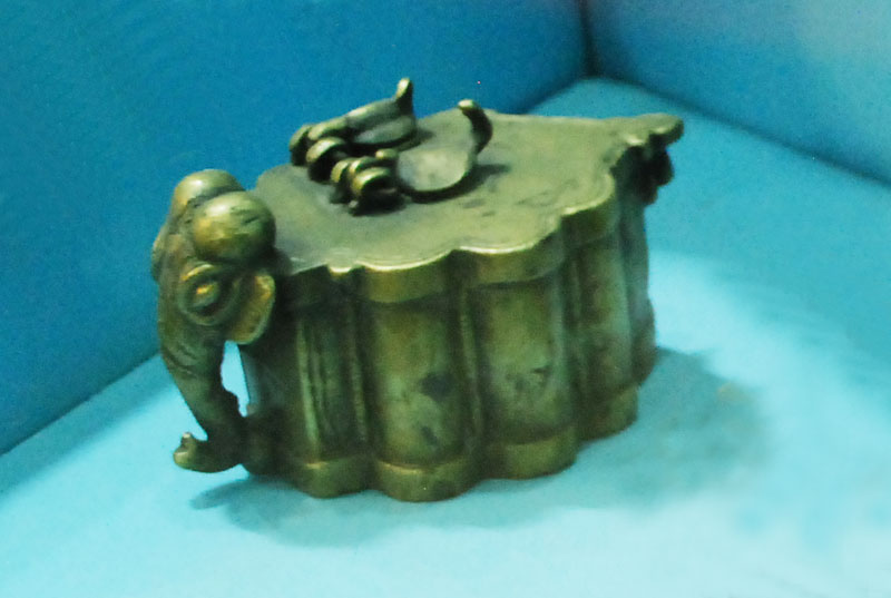 These traditional Ink pots are made of brass belong to the 19th century from the states of Maharashtra, Gujarat and Rajasthan. Some of these have the forms of animals integrated as part of the components of the box.