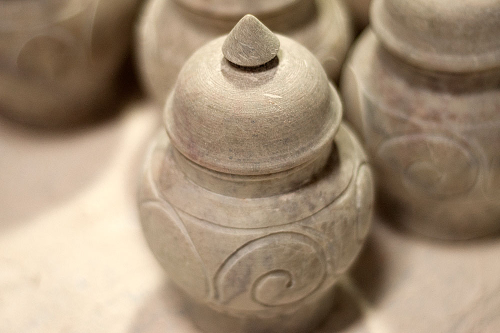Although this kind of stone jali work was meant for architectural purposes, but a small group of craftsmen of Agra have inculcated this technique of fretted stone work to make articles such as ornamental boxes, incense boxes and lamp shades of varying grades, especially for tourist trade.