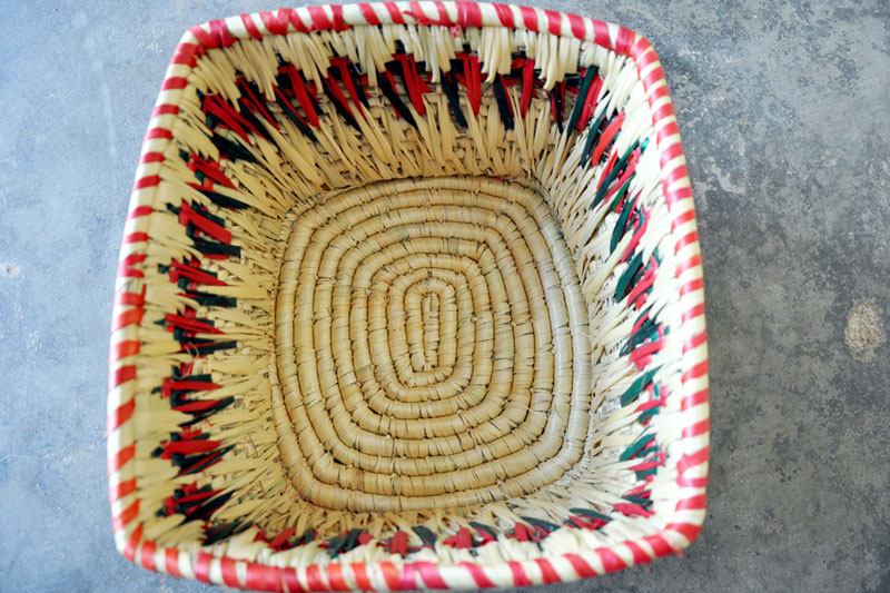 The village Naini in Allahabad is the major producer of Moonj-wild grass products. Moonj and Kaasa are the types of wild grass that richly grows near the banks of the river in and around vast areas of Allahabad. Allahabad, Gorakhpur and Behraich in Uttar Pradesh are the major centers for moonj crafts. Manufacturing process involves simple technique which is skillfully done by using natural grass and basic local made tools. Dyeing is done to color the grass. Kaccha rang -raw colors are used to dye the grass. Water is boiled at high temperature in aluminum container and the color powder is added to it. The dried off-white Moonj grass is immersed in the boiling solution to absorb the color. The grass is removed once it attains color and allowed to dry under shade. The dyed grass is mainly used to create and highlight the motif patterns. Red and green are the two main dominating colors used in basket weaving. The making process is time consuming and basically done by the women at their free time. The traditional coiling technique is used to create the traditional and contemporary products. Dried Moonj grass is made into small knots which are called 'Balla' locally. This Balla is soaked in cold water for some time before coiling to ensure flexibility. The grass Kaasa is used as inside stuffing, wherein Moonj is used to wrap around Kaasa grass to make coil. The formed coil is winded in a series to make the base of basket. Once the base is formed, the walls of the basket are made using the same technique. These coils are stitched together to make the basket strong. The handles of the basket are made and attached by stitching with the grass. More details at: Moonj Basketry Making.