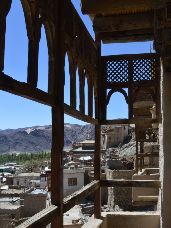 Panjari's are screens, and a Rabsal is a protruding wooden balcony, both are conspicuous parts of a Ladakhi house that a family owns, depending on their position and status. Rabsal's are always attached to the sitting room or the 'don-khang' of the house, its where the guests could be entertained and dinners hosted. Adding some flamboyance to the simple stone and mud buildings the rabsal serves a practical purpose, allowing maximum sunlight into the house, keeping away the cold draughts and dust from the spacious terrains. They also become a large window for the family to enjoy the view outdoors. The absence of glass in earlier times, gave way to mesh-like designs called 'pinjkari' or 'panjari' incorporated into the rabsal, they work like shutters that can be opened during the day and closed at night. It is difficult to say where exactly the idea of the rabsal was initiated or when, but some sources state that it could have originated from Kashmir and others, from Tibet.