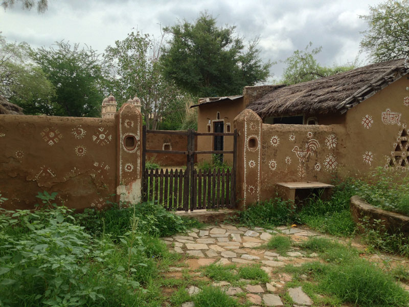 These huts are commonly seen in the villages of Rajasthan. The material used to construct these huts is a mixture of mud and cow dung which is used to make it termite free and antiseptic. The house is decorated by designing the walls from outside with mandana and paintings depicting the culture of Rajasthan.