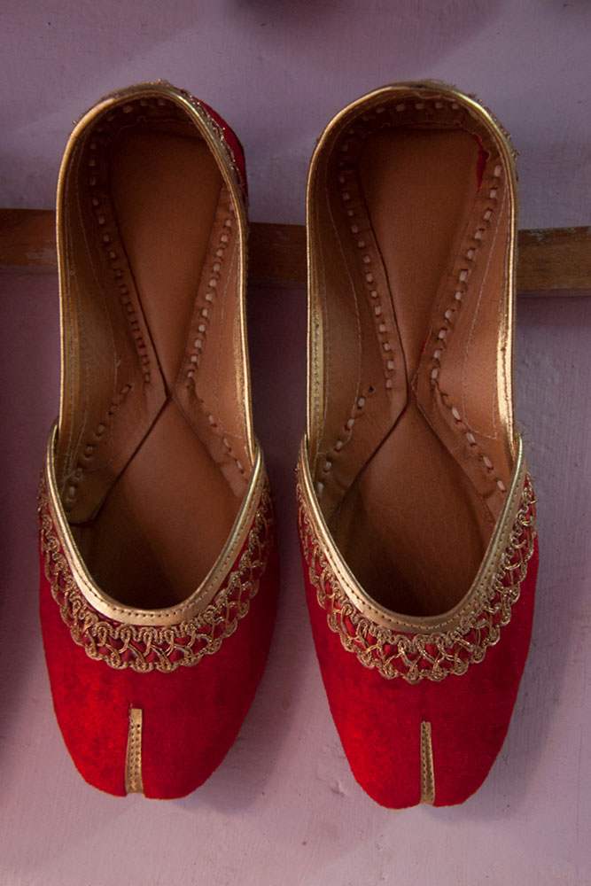 • Red and golden combination shoes usually worn in festivals and marriages.