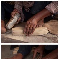 • Artisan is shaping the Sole part of sherwani shoes.