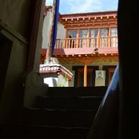 Stok Palace is where the royal family of Ladakh resides permanently. This magnificent structure commands a view over the village of Stok. Painted in the archetypal off-white with traditional windows, it has been beautifully carved and colourfully painted pillars and doorways, leading into the palace. It lends itself to natural simplicity with its earthy palette of colours. The entrance of the palace has inscriptions in the Lansa Script, and to the forefront is a huge stone courtyard enclosed with walls and seating arrangements to one side. Hand painted ethnic doors are present all over the palace. The courtyard has a huge 'dhwaja' or flag installed in the centre. The palace is famous for the collection of ancient and valuable objects of the Ladakhi heritage - like utensils, clothes, jewellery, weapons and currencies - that it houses in the royal families personal museum.