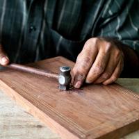 Artisans use a half-round chisel and hammer to carefully engrave the design, pressing the sharp edges of the wire into the wood while the thicker edges remain on the surface. Once the engraving is complete, the product is smoothed using Silli (a tool for sanding) and filled with Burada- a mixture of sawdust, Fevicol, and water—to fill in any cracks or grooves. After drying, the product is scraped, sanded, and polished with wax to enhance its finish and shine.