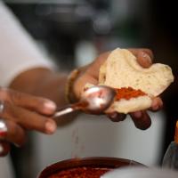 Vada Pav is a popular vegetarian fast food dish native to the state of Maharashtra, India. It consists of a batata(potato) vada sandwiched between 2 slices of pav(bread). It is served with fried green chillies and chutney(sauce) made out of shredded coconut. The dish was initially started as the cheapest form of a meal for the lower income group but due to its taste, the dish became popular and is served all across the state of Maharashtra and even Gujrat.