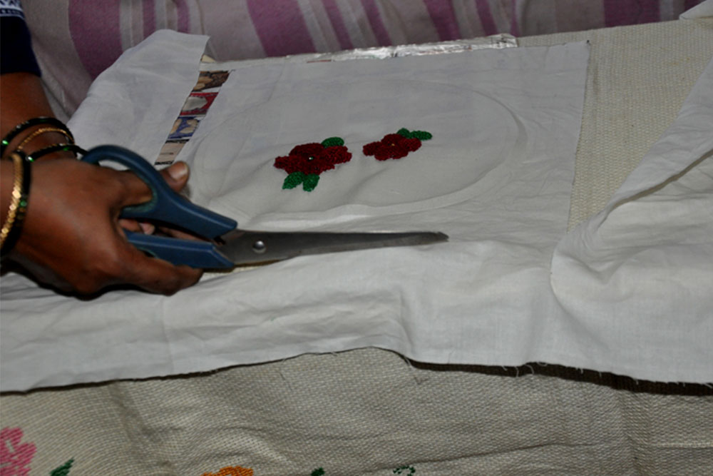 • The artisan started the embroidery on the design.
