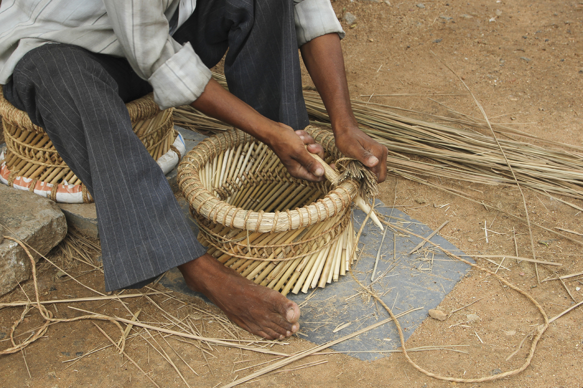 Craftsmen from Rajasthan (migrants) found their way to Bengaluru after being to Tamil Nadu, Maharashtra. Initially the craftsmen used to bring the finished products to trade, but that cost them a lot of expenses so they learnt how to make these bamboo crafts, which saved expenses. The variety of bamboo used for making the bamboo crafts doesn’t grows on the slope, So they have to bring all the raw materials from Rajasthan itself. Almost about 300 households in the village near by district involves in making the bamboo crafts. It is observed that there is no particular caste or community in Rajasthan who are exclusively connected with the traditional craft. It is generally carried on by all, particularly the peasants irrespective of caste, community or creed.