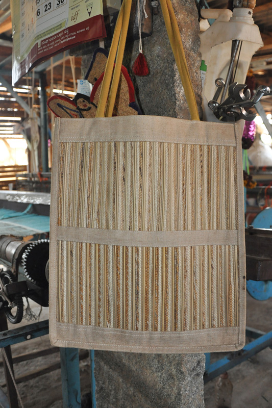 Craftsman of Lakkavanahalli mainly works on making Globe lamp, mats, yoga mats, dining mats, prayer mats, handbags, window blinds, cushion covers, door mats, and purse. They also get the opportunity to exhibit their work in exhibitions at various places in the country. The products are marketed in Bangalore, Delhi, Bombay, England, Maldives and Dubai.