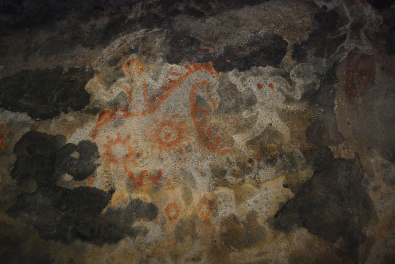 Paintings of both red and white colors are found in this shelter. Illustrations of warriors, horse riders, animals and various rituals can be seen. Superimposition of paintings makes this cave an important landmark in the map of Bhimbetka.