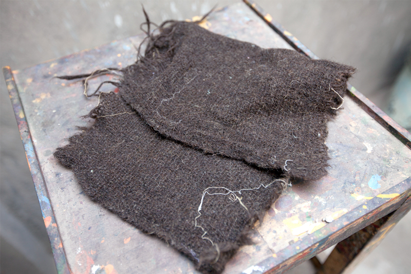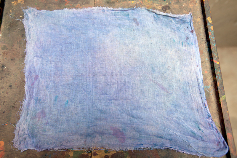 A piece of woolen cloth is laid in the color tray. This helps in proper application of color on the block.