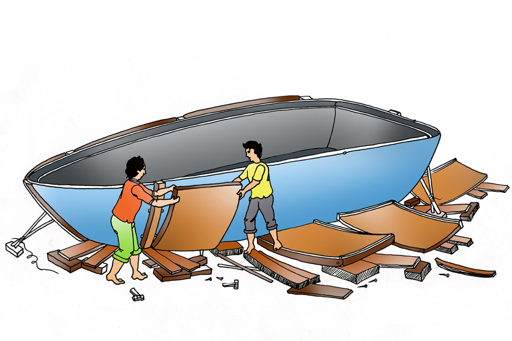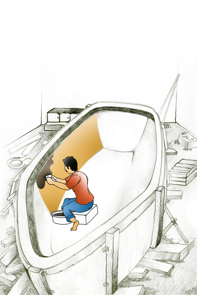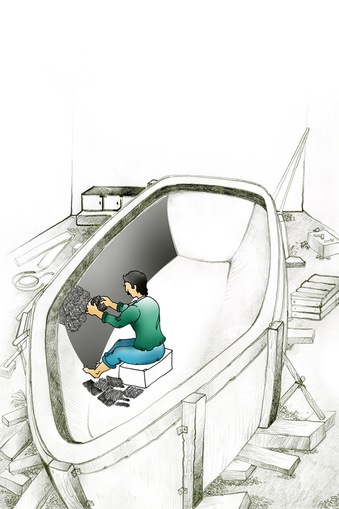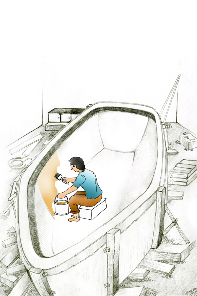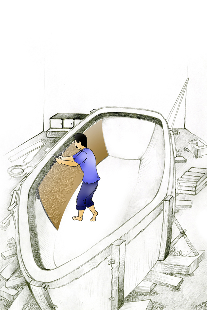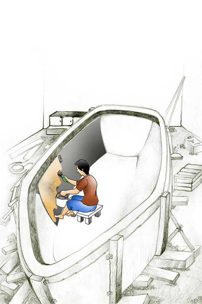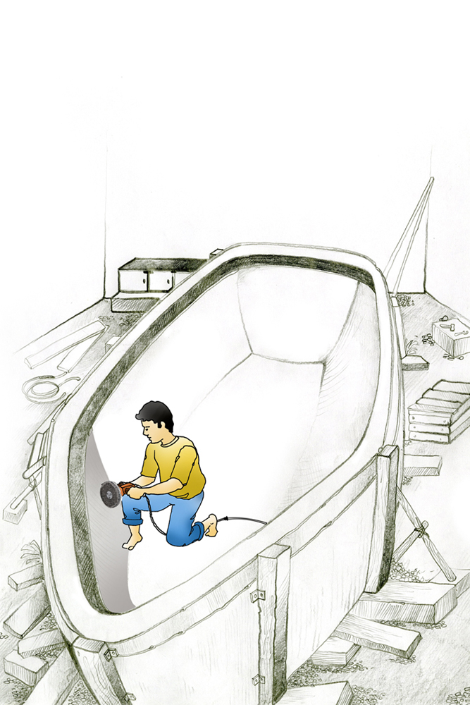 To start off building a fiberboat, the very preliminary step that is carried out is construction of a mold. The mold is built to form the structure for the final boat. The old is built with polyester, plaster of paris or of wood. The mold is supported with materials until they solidify. Molding includes two kinds- male mold and female mold. When building with a male mold, fibermat is placed over the mold’s exterior surface and then soaked with liquid catalysed resin. Working with female mold, the fibermat is placed in mold’s interiors and then soaked with resin. In both cases, multiple layers of fibermat are built and after all layers of resin has set up hard and cured, the solid part can be separated from the mold. With the male mold the laminate starts inside out, the outermost layer goes last, the exterior surface is polished to make it look nice and shiny afterwards. With a female mold, the outermost layer goes in first. The boat emerges from the mold neat and shiny if it is treated carefully and less work is done on exterior finish. The application of wax for master mold is a must before starting off with resin work. Production builders usually go for female mold.