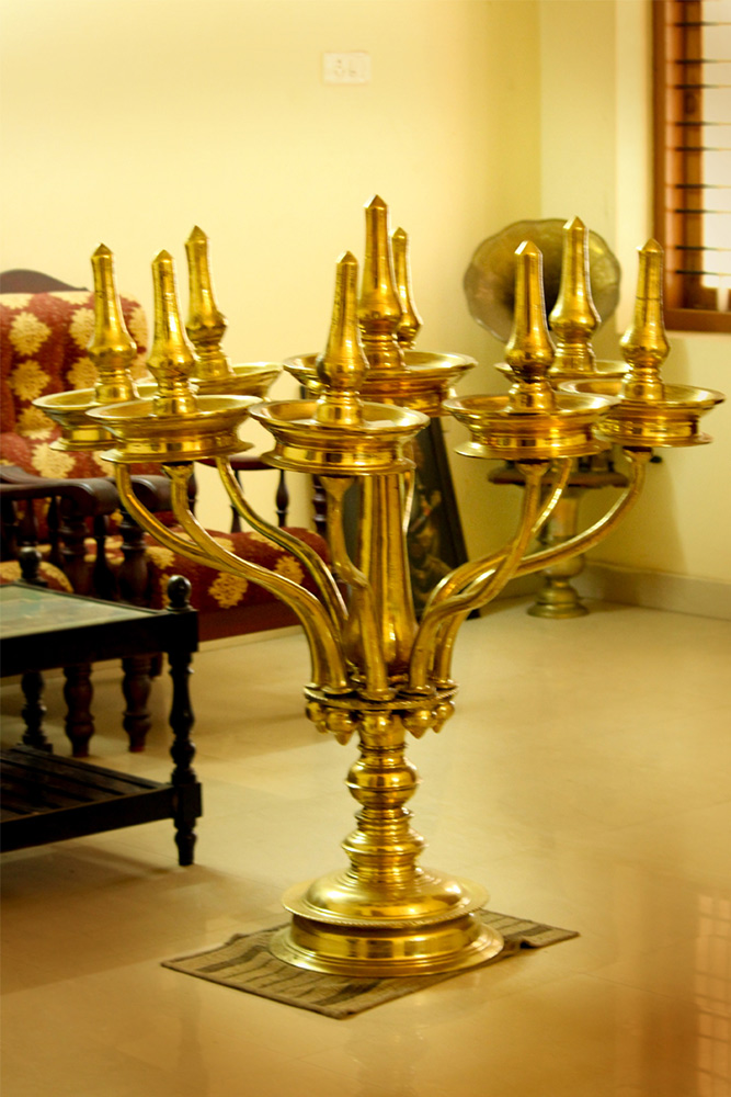 Different kinds of lamps like Thamaravilakku, Aaluvilakku, Vaasthuvilakku, Thookuvilakku, Ashtamangalyavilakku, Lakshmivilakku, Aamavilakku, Mayilvilakku and Nilavilakku.