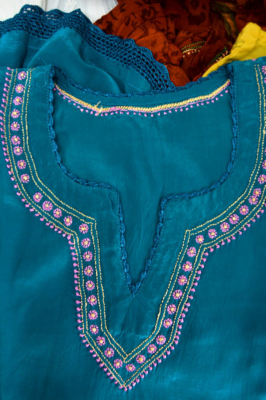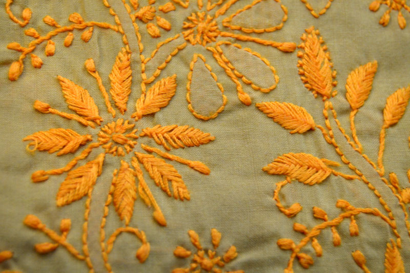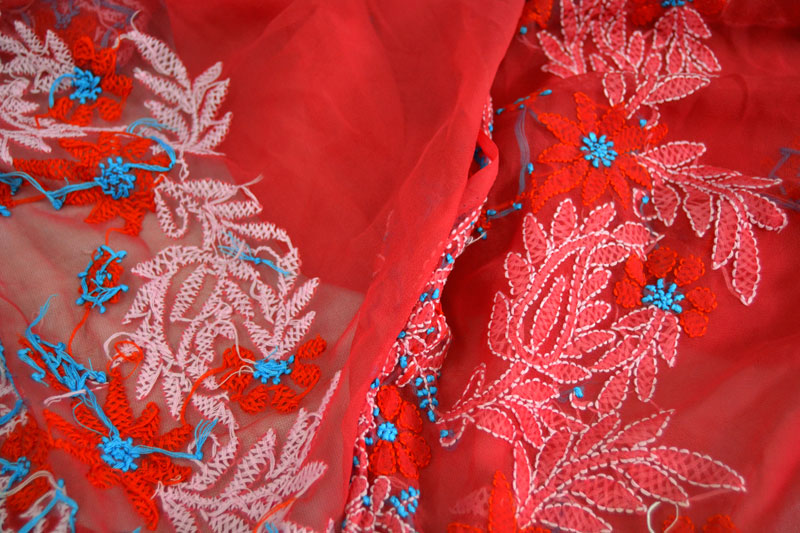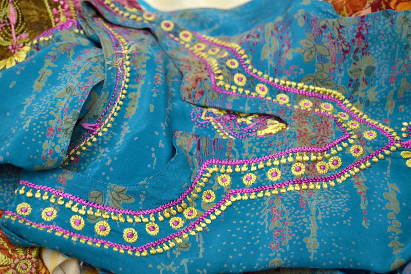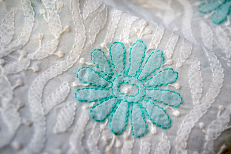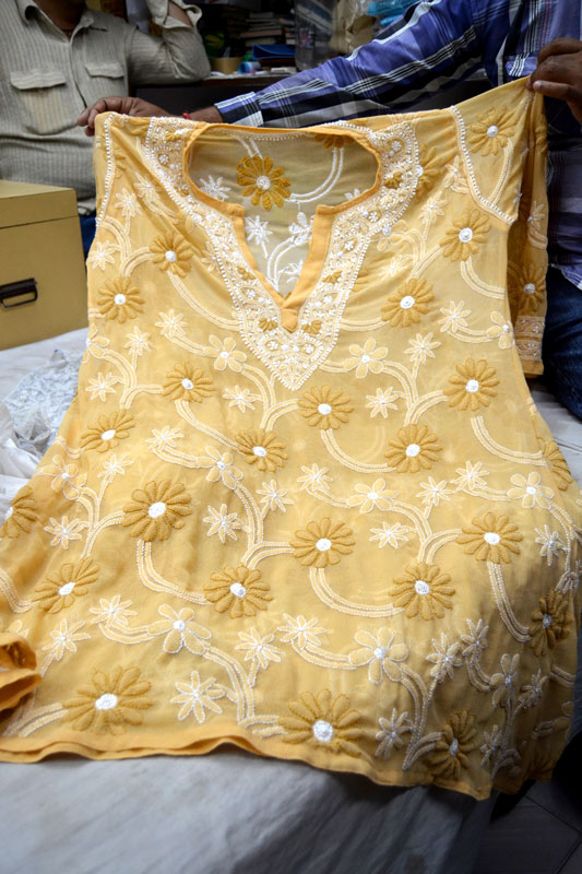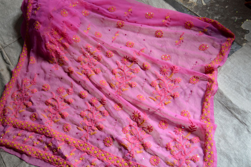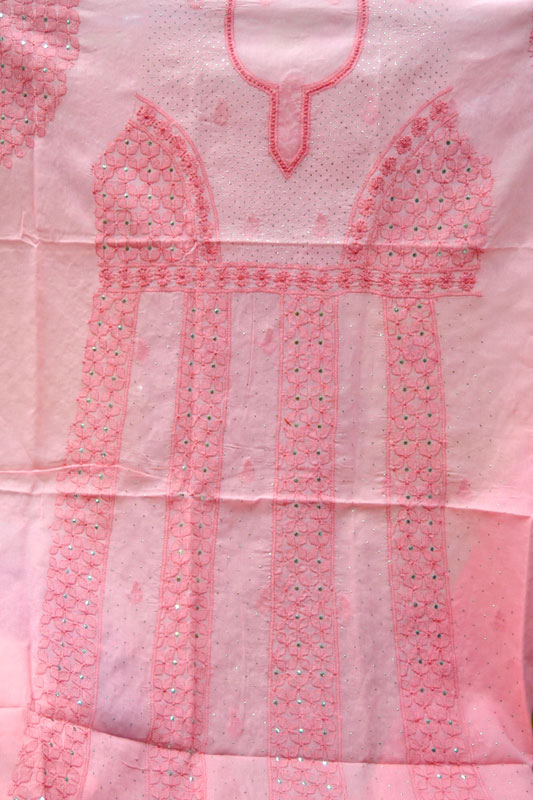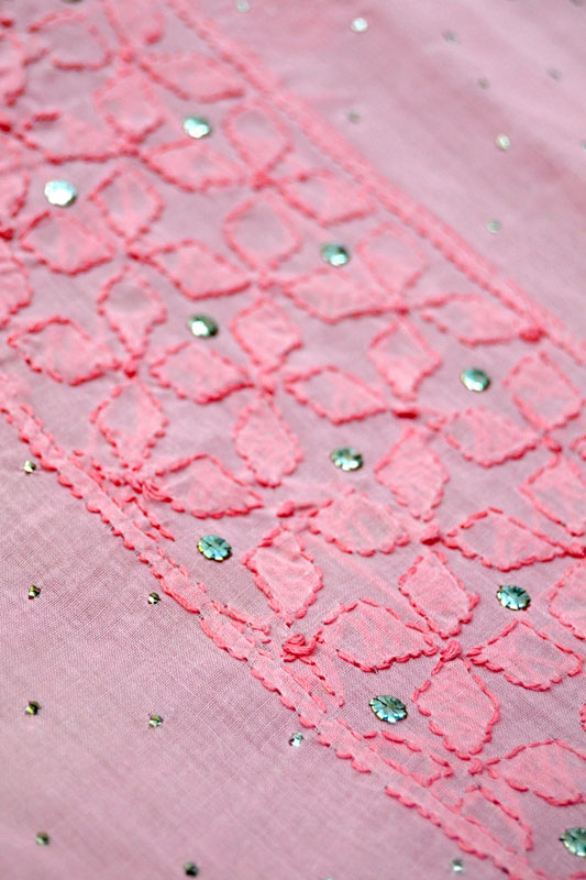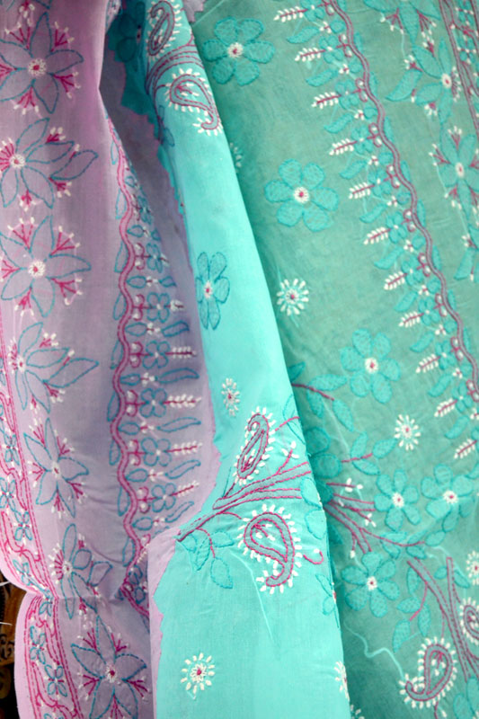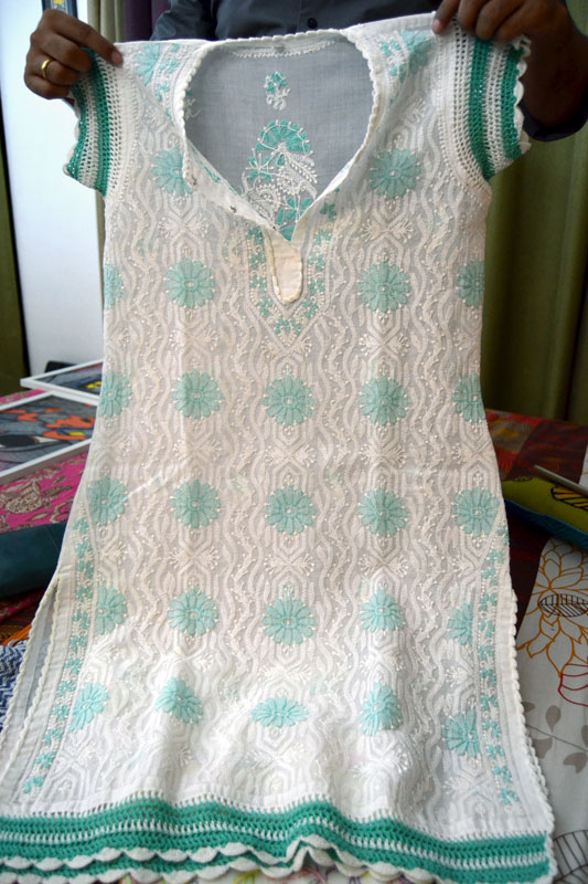 Chikan work is no more confined to traditional salwaarkameez, kurtapajama and sarees, but is a delight to wear and watch in almost all kinds of western wear like funky tops, designer kurtas, enticing skirts, etc. Drifting apart from the original pristine white-thread setting, the tone-on-tone embroidery is in vogue these days. The significant use of beads, sequin, mokaish (white flat silver strip embroidery) and crochet have also gained wide acceptance.