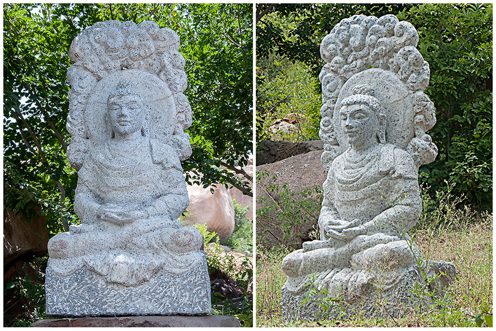 Artsian Mr, Jinendra M M who heals from Shimoga has been trained in sculpture by famous artisan sculptors like Kashinath and Venkatachalapathi. He has even started his known studio called chittha and is established in doing commercial sculptures. Being his first attempt in stone medium, the artisan beautifully carves the stone to get Buddha image. Artisan says the place made him meditate and relate to Buddha and his teachings. Artisan even read book regarding Buddha and felt his presence in the air and atmosphere in Adhima, that’s the reason he chose to sculpt Buddha. Mr. Sandeep assisted in making this calm sculpture.