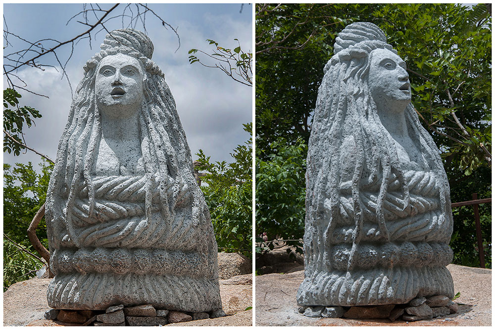 Artisan Mrs. Suja Sarojini is originated from kerala, pursued in bachelor of fine arts in native and did Masters in Bangalore University. She gets to the history of the place, name of the place Shivgange in depth and discovers the goddess Ganga’s existence. The mystery of flowing Ganga river routes rebounds in her thoughts, as a feminist she upholds the importance of Ganga on Shiva’s head by linking to the water crisis in the place and co relates the name, existence of Shivgange and Antharagange. The expression of the sculpture Shivgange is as mysterious as the water flowing. Artisan successful depict her thoughts with the help of her assistant Mr. Prashanth on the stone.