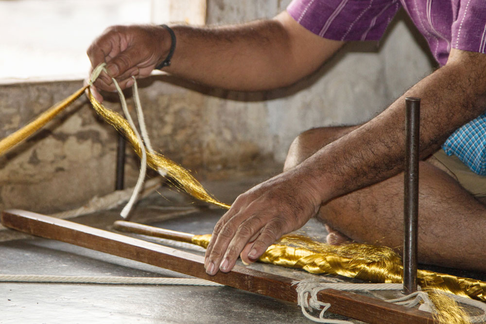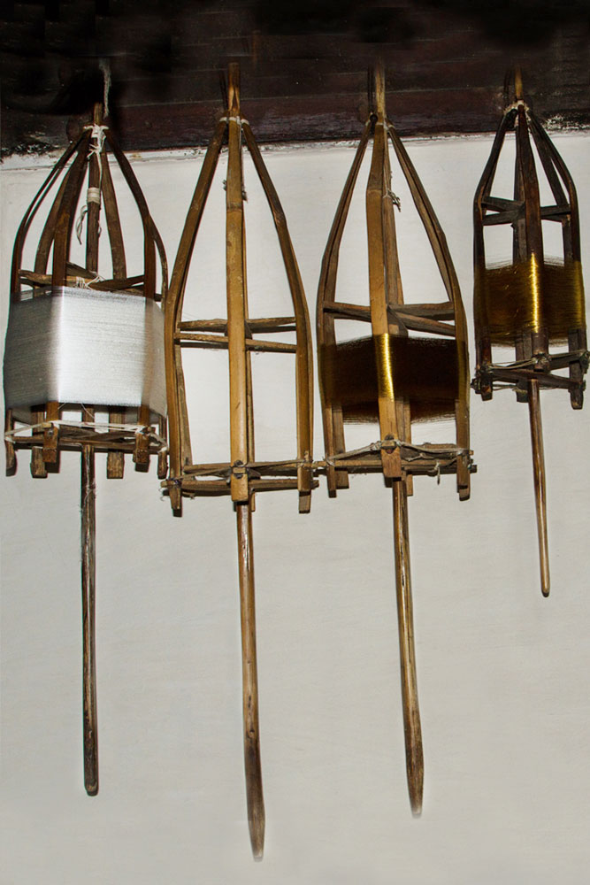 The following are the tools and raw materials used for the Dhoti making at Melukote. They commonly use Throw Shuttle Pit looms for weaving the Dhoti in the Melukote region of Pandavapura taluk of Mandya district of Karnataka.