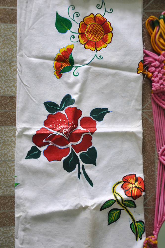 Fabric cloths are painted with beautiful floral patterns by artisans, which are later stitched to produce various types of garments.