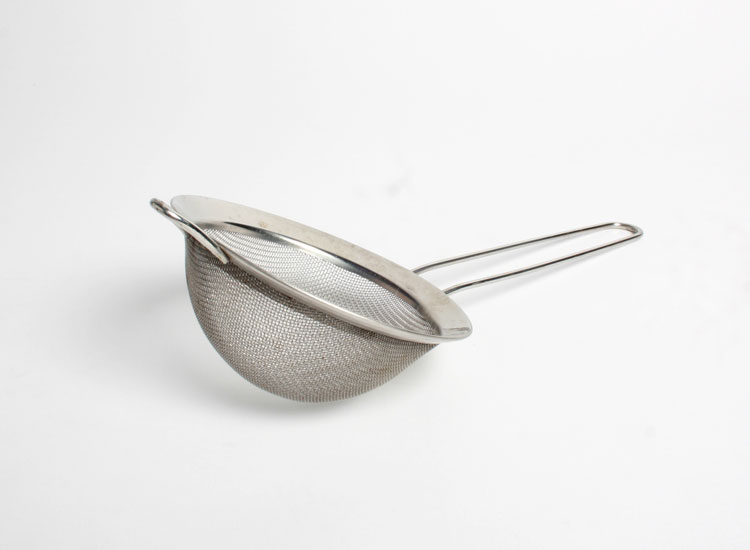 Sometimes a muslin cloth (a thin, loosely woven cotton cloth) is used for fine straining purposes such as to drain curds, strain juices, or often is used to line a sieve.