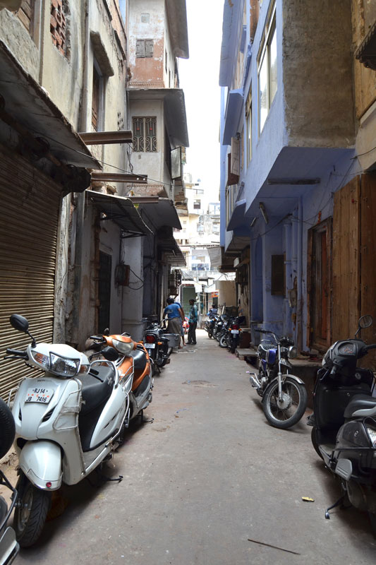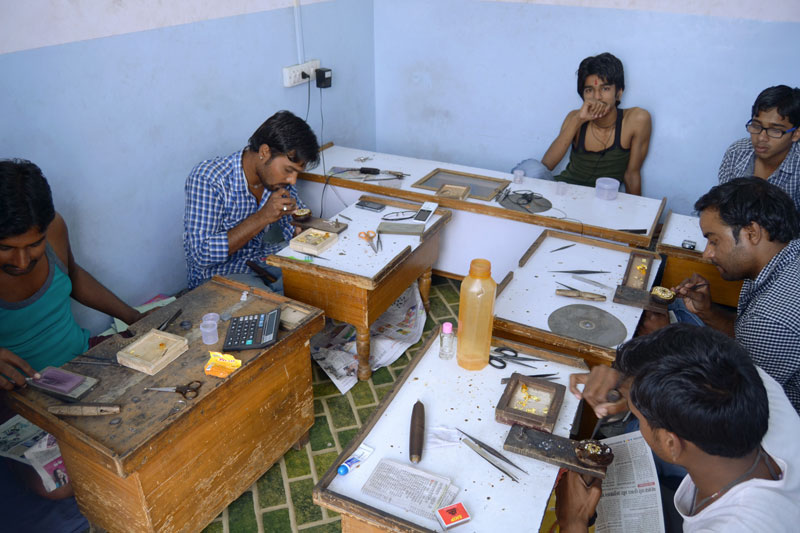 The ancient architecture is beautifully conserved and gracefully blends with contemporary shops and cafeterias. The broad roads give way to narrow bylanes where karigars can be spotted working with crafts like bandhani, gotapatti, miniature paintings, blue pottery, silver and kundan jewelry making. ‘Gopalji ka raasta’ is one such lane in Johari Bazaar where most of the Kundan karigars live and work.
