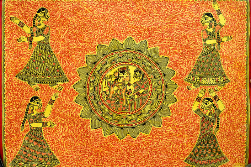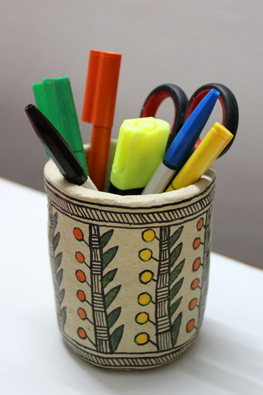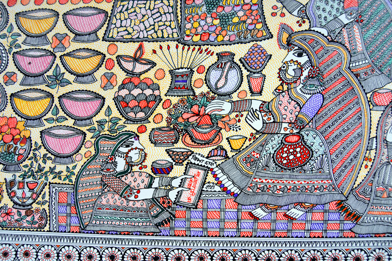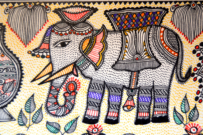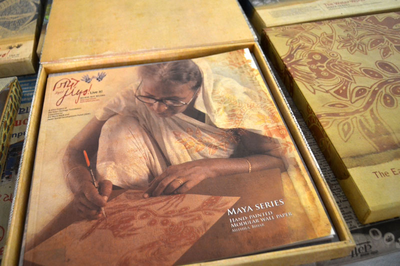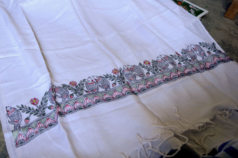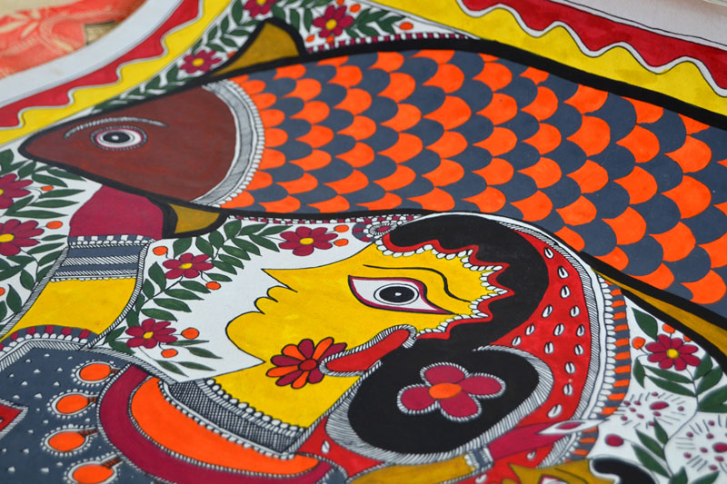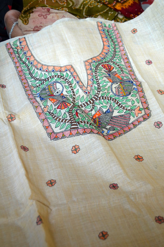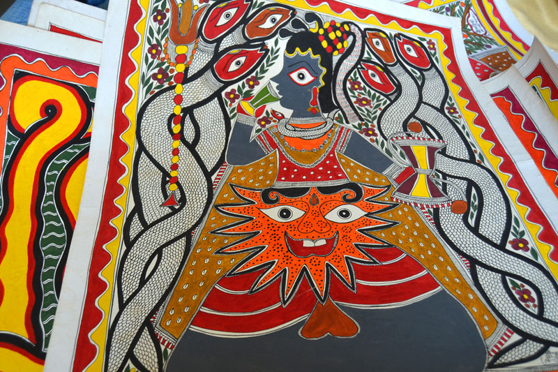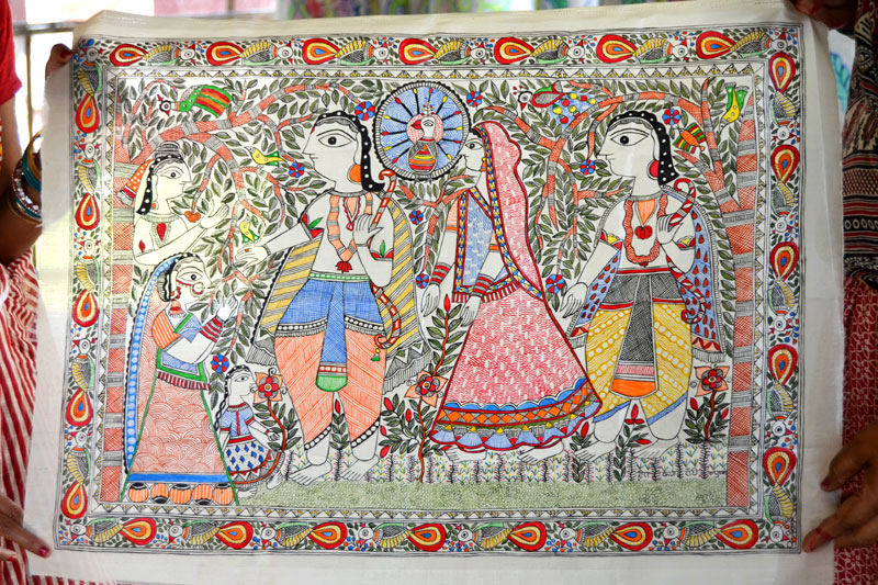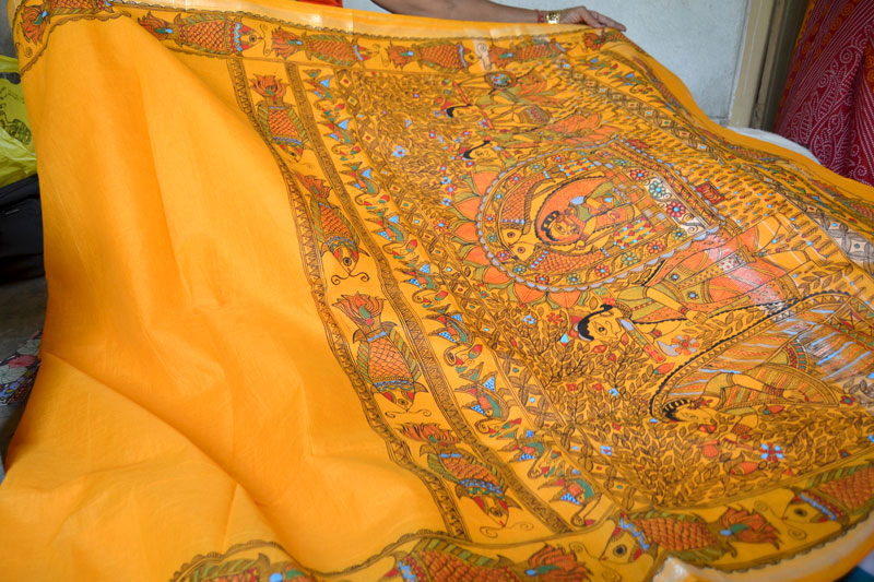 Artists of different castes and genders are now borrowing themes and styles from one another, and painting it on a variety of materials like paper, fabric, paper mache, cardboard, wood and metal boxes. The product range includes wall paintings, wall tiles, pen-holders, dustbins, plates, sarees, dupattas, suits, ties and cushion covers.These usually get sold out of the artists’ home directly.
