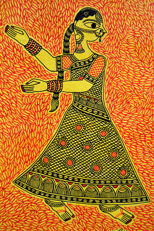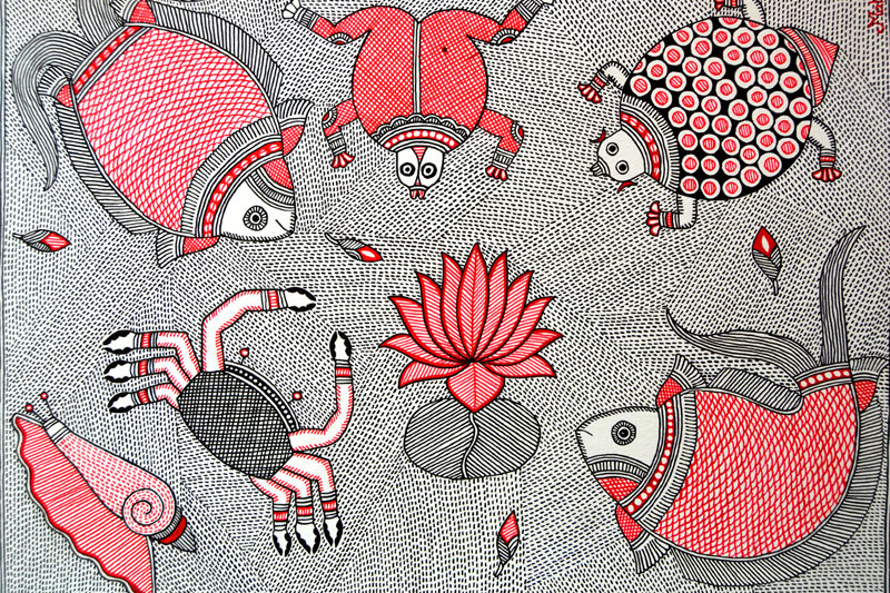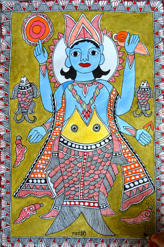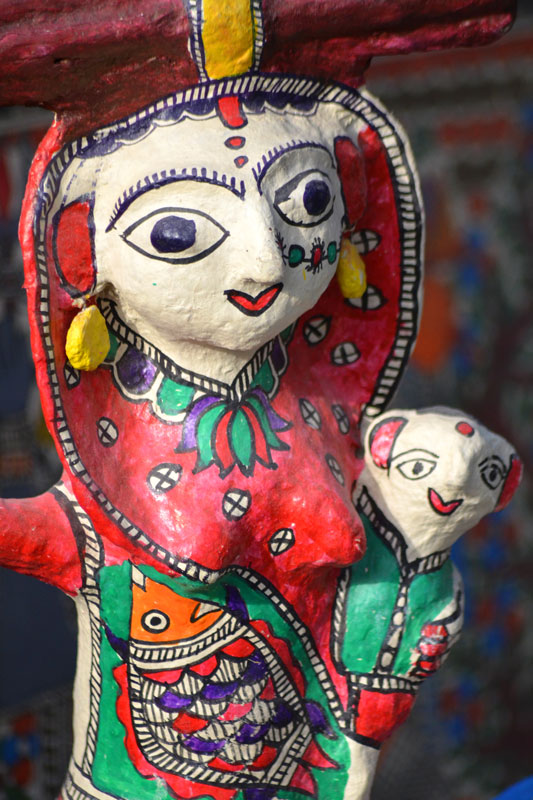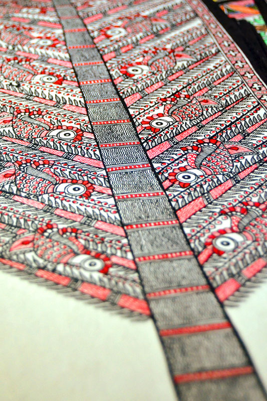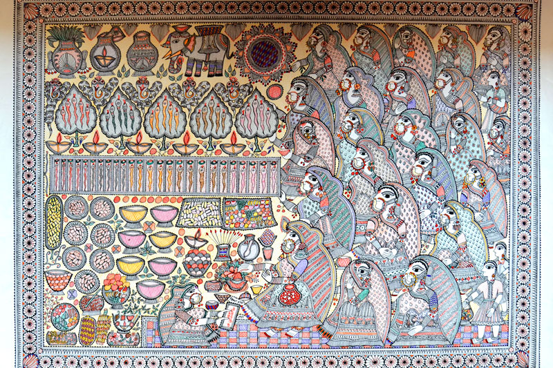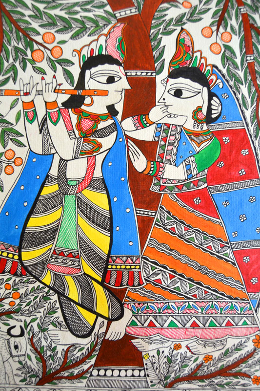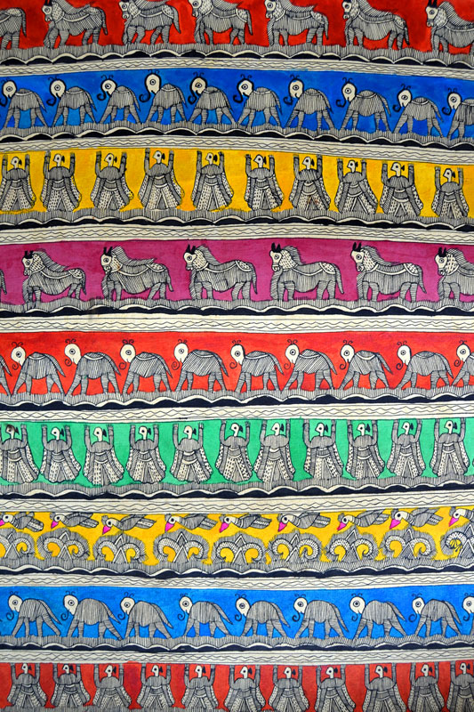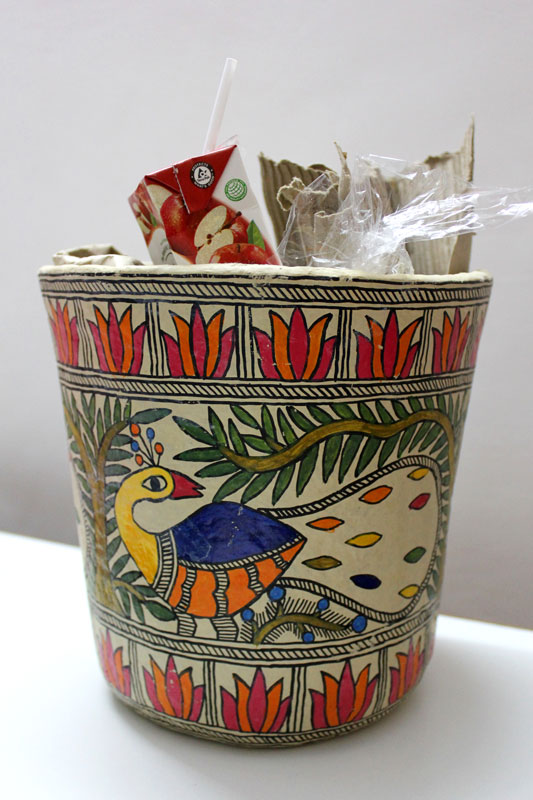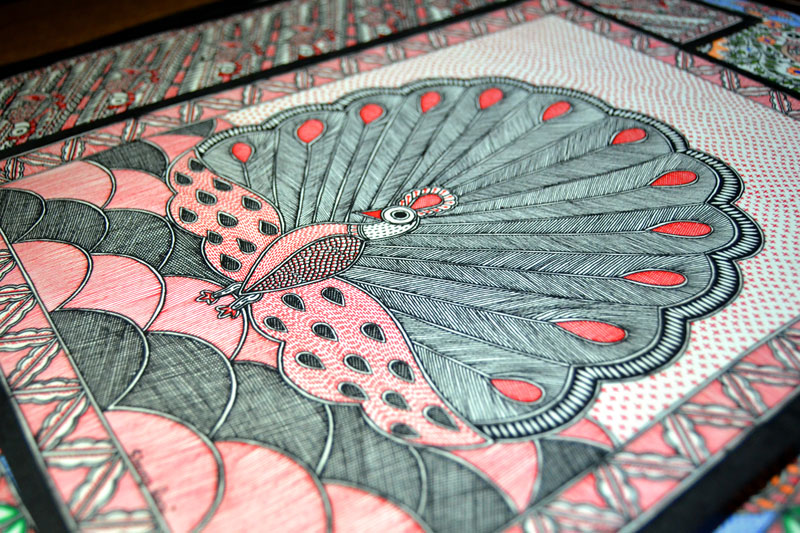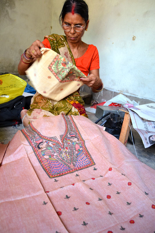 Artists of different castes and genders are now borrowing themes and styles from one another, and painting it on a variety of materials like paper, fabric, paper mache, cardboard, wood and metal boxes. The product range includes wall paintings, wall tiles, pen-holders, dustbins, plates, sarees, dupattas, suits, ties and cushion covers.These usually get sold out of the artists’ home directly.