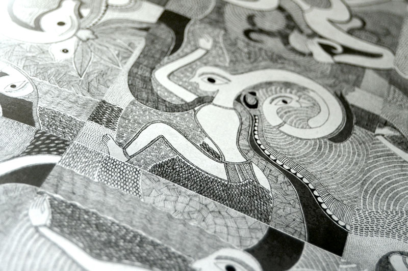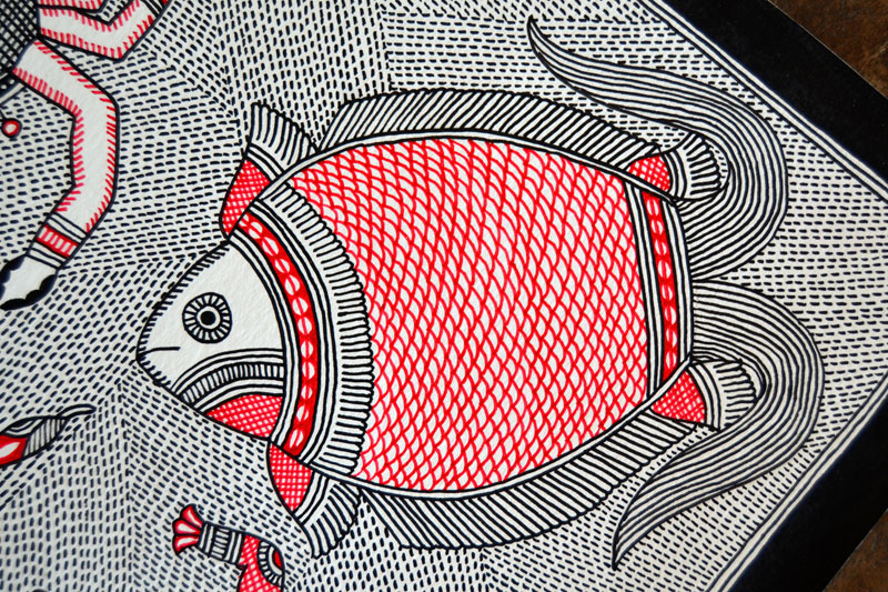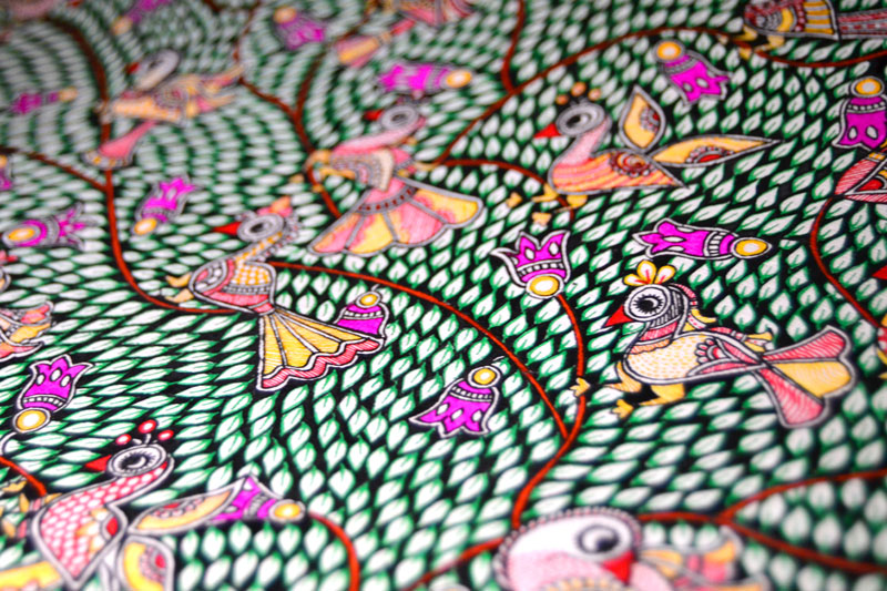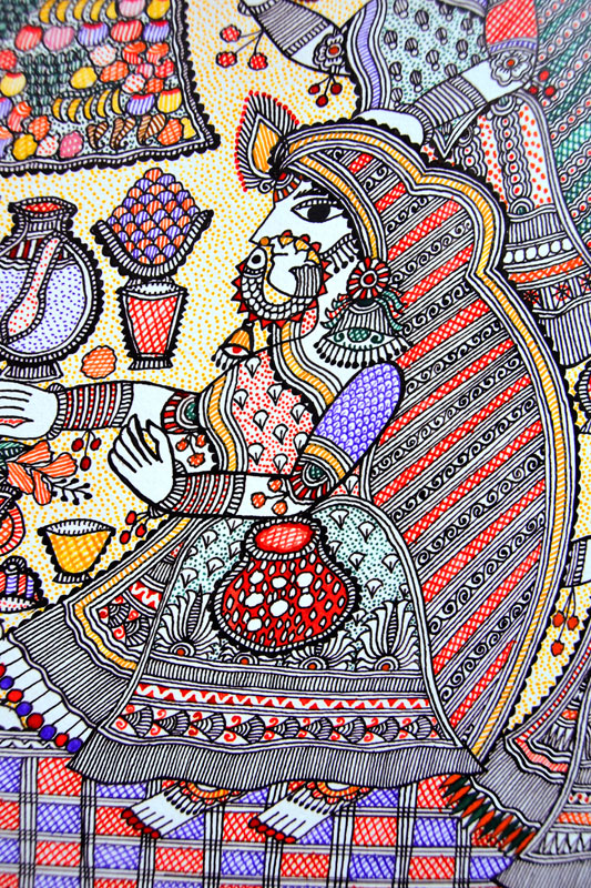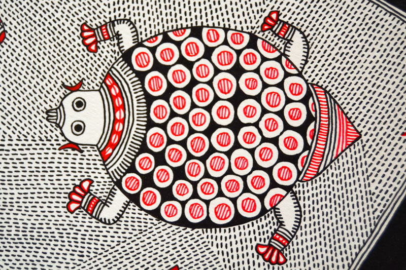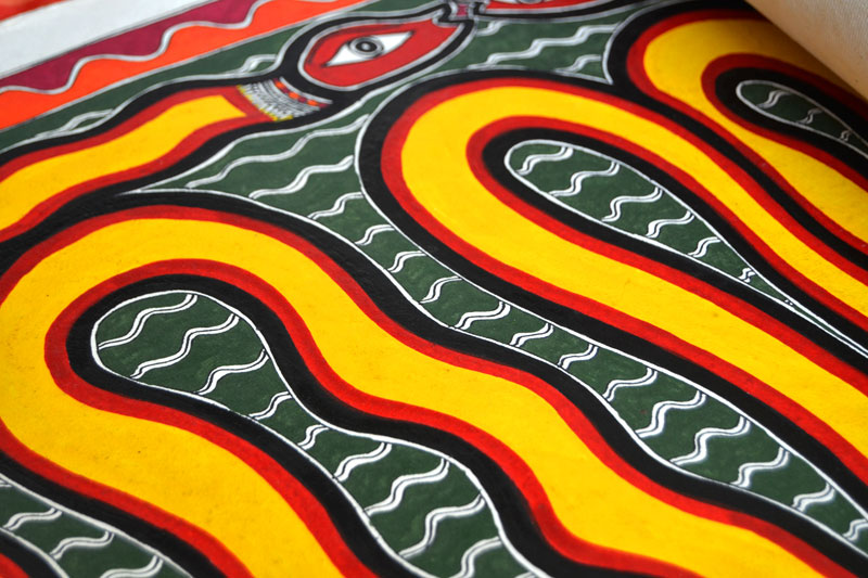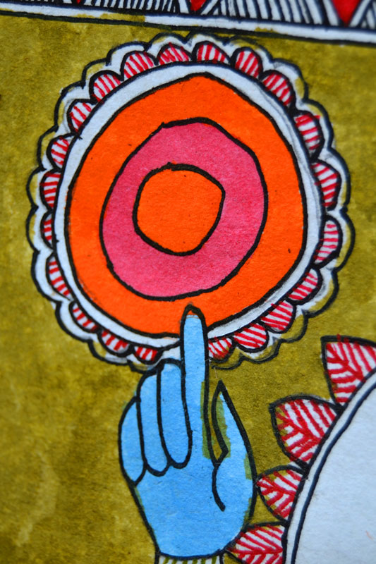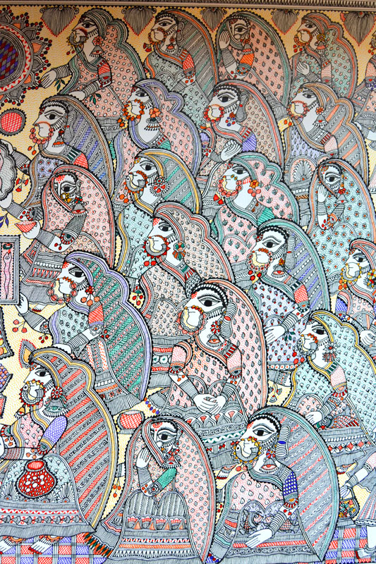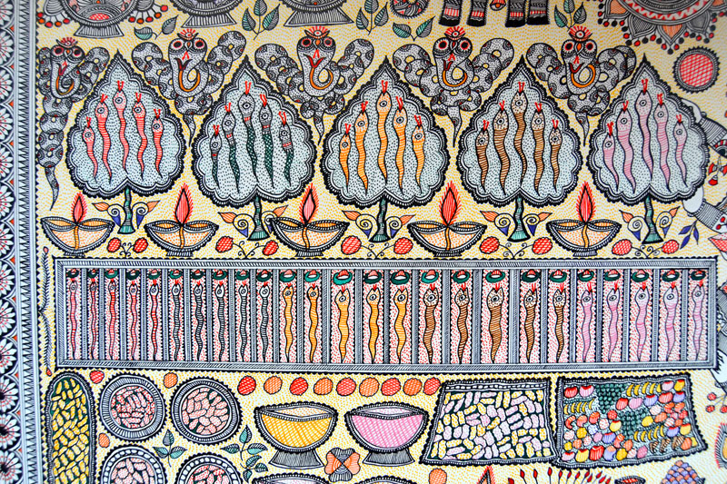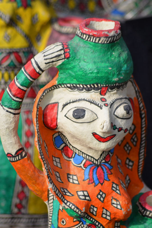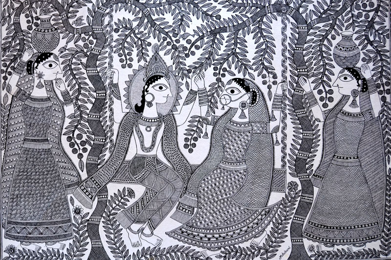 Artists of different castes and genders are now borrowing themes and styles from one another, and painting it on a variety of materials like paper, fabric, paper mache, cardboard, wood and metal boxes. The product range includes wall paintings, wall tiles, pen-holders, dustbins, plates, sarees, dupattas, suits, ties and cushion covers.These usually get sold out of the artists’ home directly.