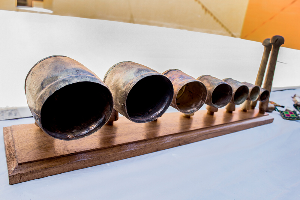Artisans Mr. Jan Mohammed S. Luhar and Mr. Luhar Ismail from Zura, a renowned artisans who changed the perspective of the usual bells by making a varieties of products by following a traditional method of making bells. Some of the attractive products using bells are wind chimes for home décor, traditional metal bell doorway hangings, bell key chains and finely tuned musical instrument etc. The size of the bells starts from 0 to 13, 0 size will be the smallest and the size number 13 will be the largest one. Whereas the price for the article depends on the size and starts from INR 25/- to INR 2500/-