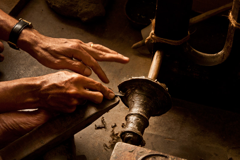 • Wax: Bee wax is used to create the wax model. The wax is coated on the earlier prepared rough clay model of the product to be made. Lathe machine: It is used to turn the object while making wax model and carving process.