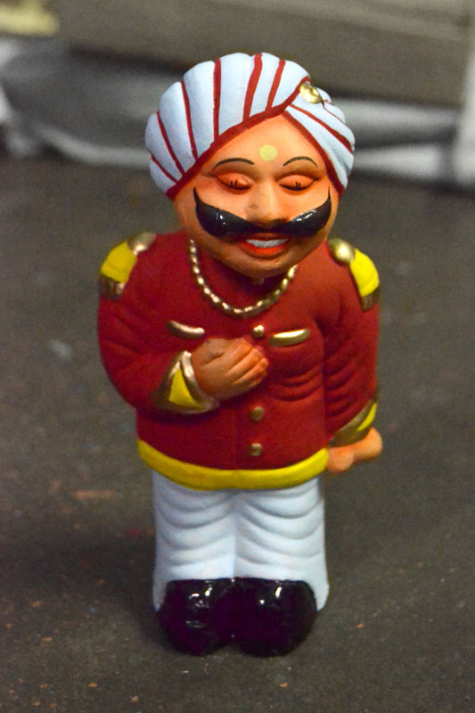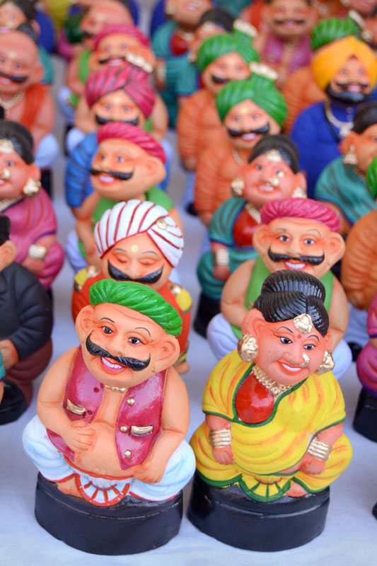 The toy sets include series on the sadhus of India, Gods and Goddesses, the people, musicians, national leaders of the freedom struggles and brides of India, among others. Vegetables, fruits and musical instruments for decorative purposes are also being fashioned out of clay. Most of these items are retailed through hotel shops, government emporiums or exhibitions.