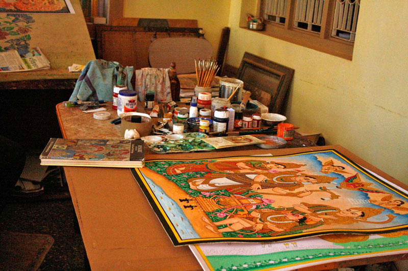 B.P. Ramakrishna: Shri B.P. Ramakrishna is one of the traditional artists in Mysore with about 35 years of experience. He has two sons Ashwin and Naveen who are completely supporting his father in painting works. Shri B.P. Ramakrishna also provides training on Mysore traditional painting. The basic training course is oftwo and half monthsduration.
