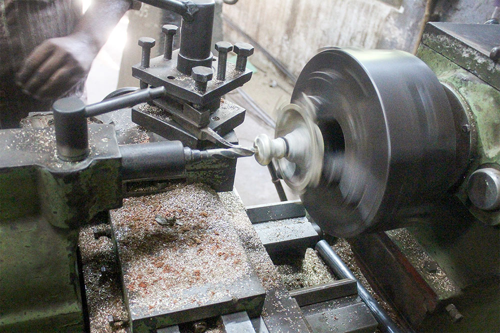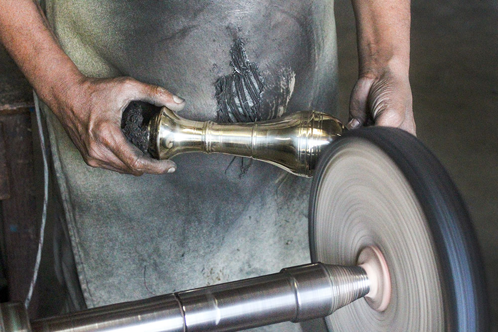 After grinding, it is sent for polishing work. Once the polishing is done, it's sent for design engraving. It is done by hand using various types of chisels. After engraving, the lamps are sent for final polishing. After this polish, the lamps will be glowing. The lamps are now packed and ready for sale.