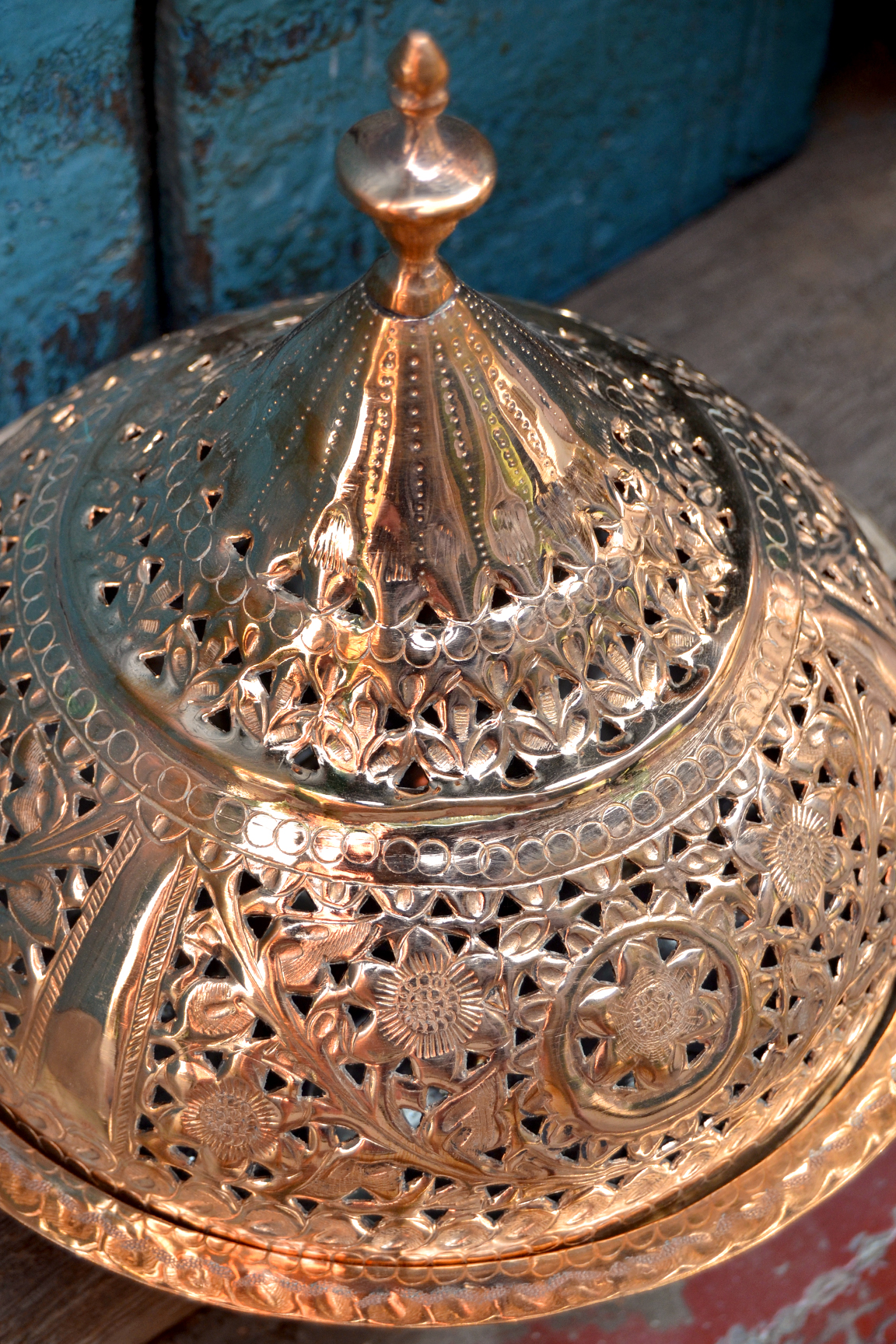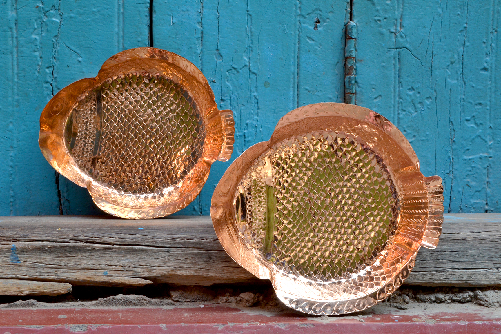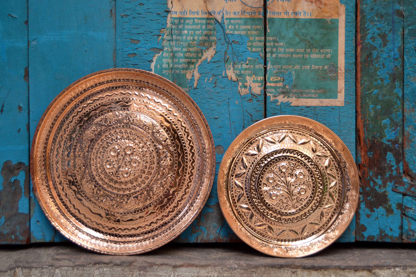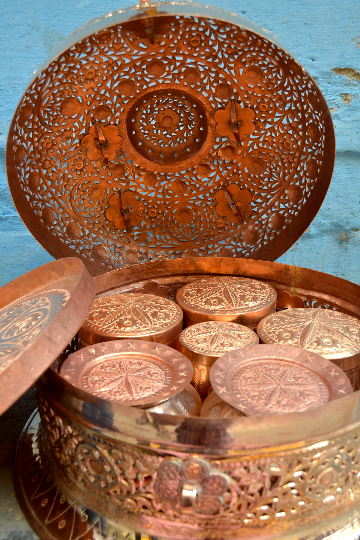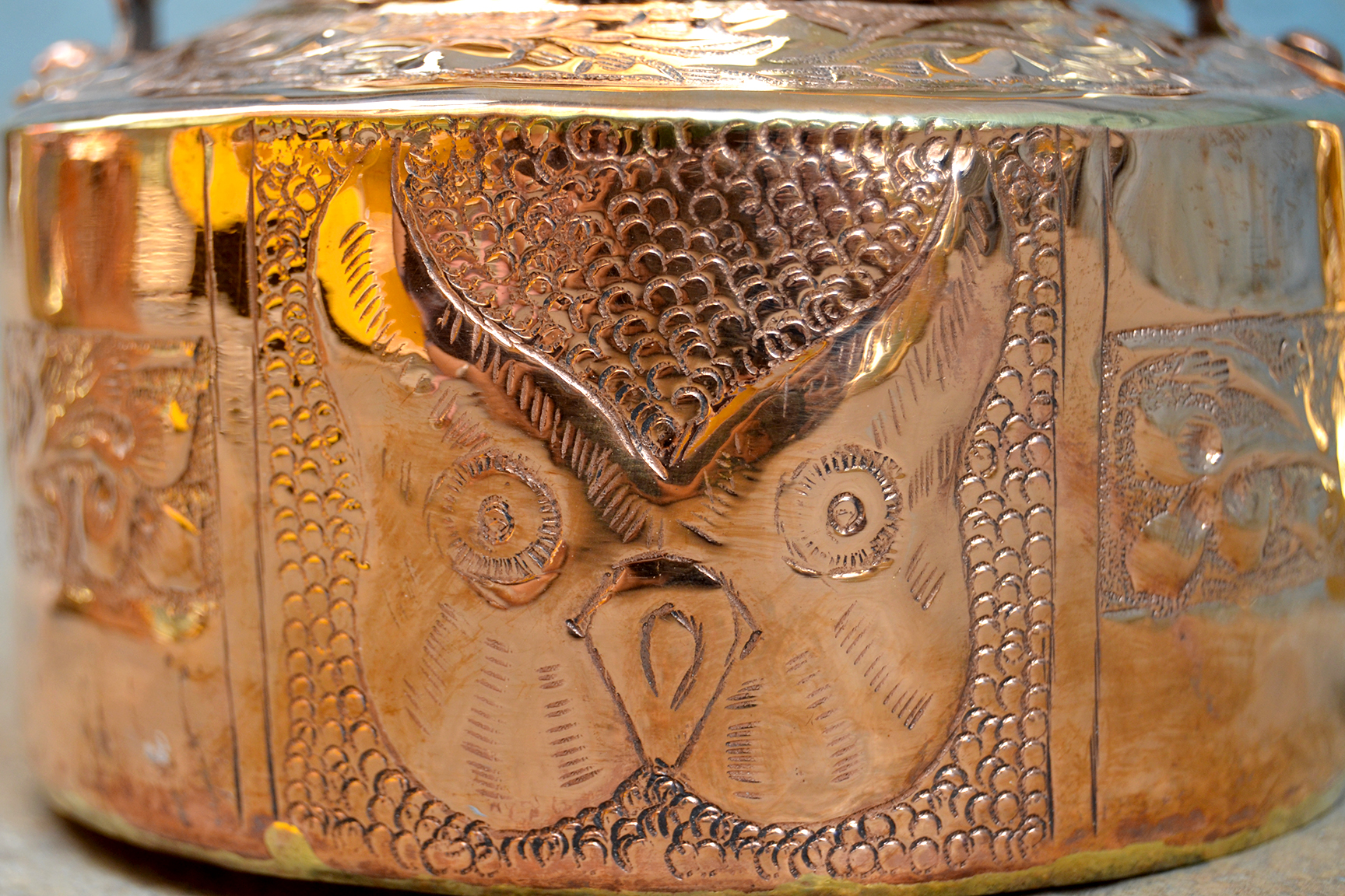 Care: As it is a natural quality of copper to oxidize over time, it is advised that these intricate items be cleaned with vinegar and salt using a non-scratch cloth to reduce oxidization.