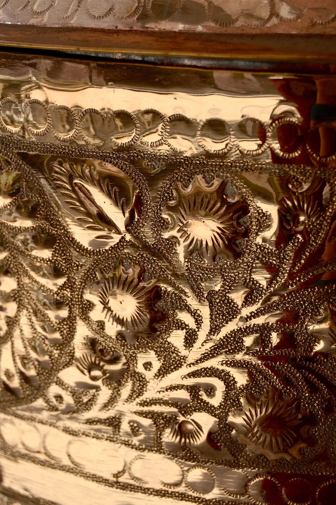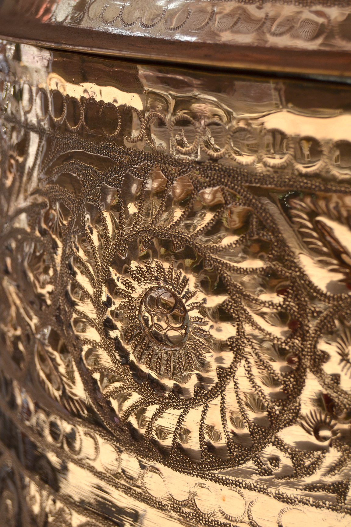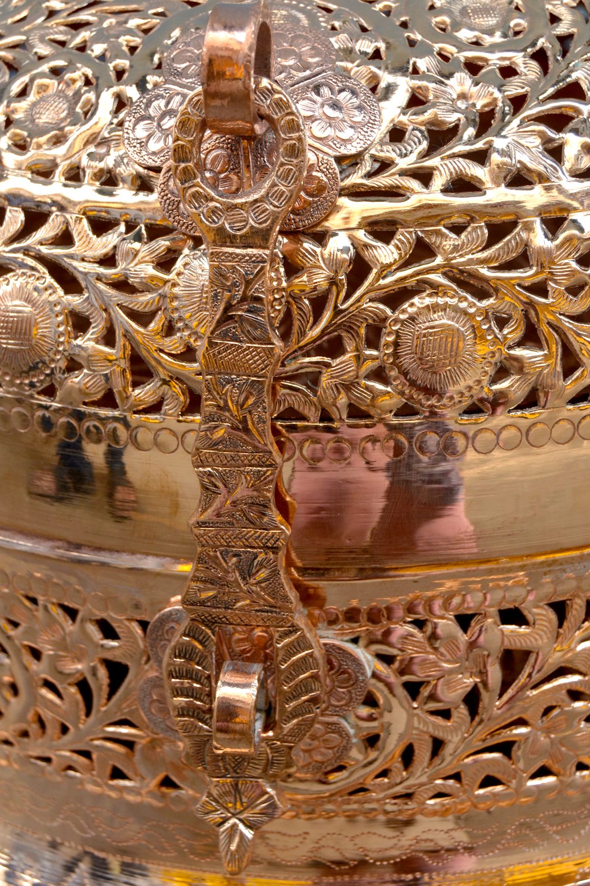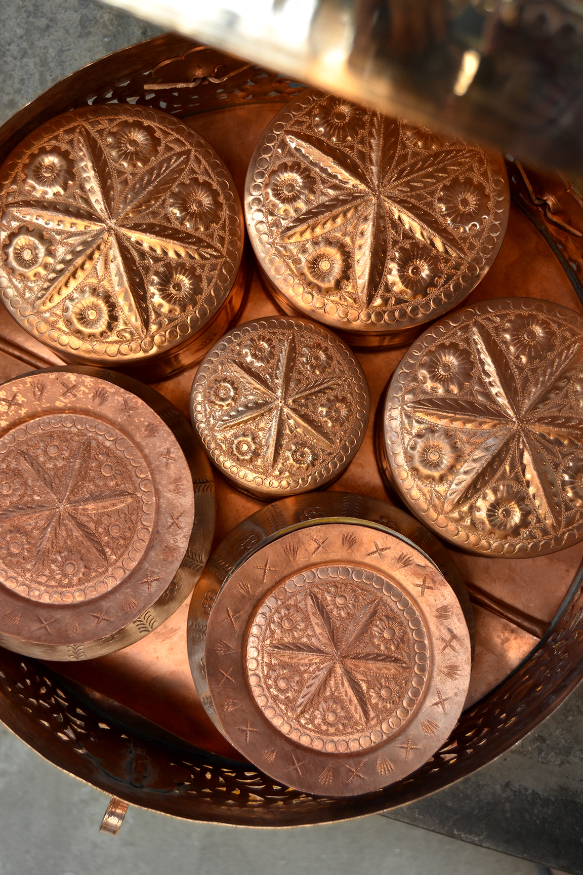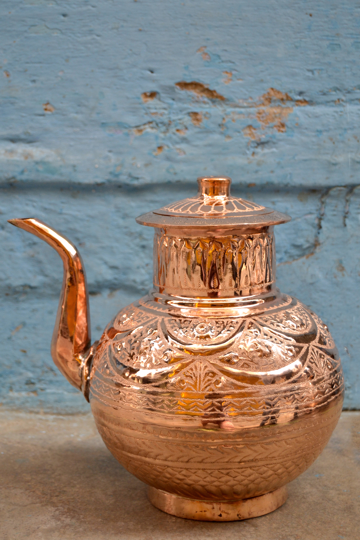 Care: As it is a natural quality of copper to oxidize over time, it is advised that these intricate items be cleaned with vinegar and salt using a non-scratch cloth to reduce oxidization.